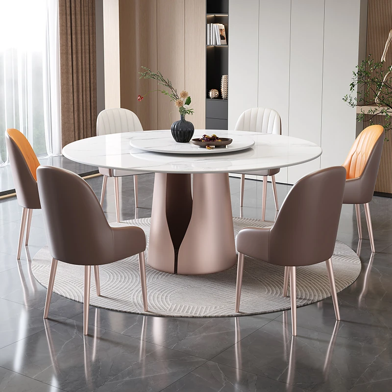 ラグジュアリーなダイニング体験を提供!ウェンセン高級ストーンテーブル&チェアセット - コンパクトなリビングに最適な回転式ラウンドテーブル。おしゃれで実用的なライフスタイルを演出します。