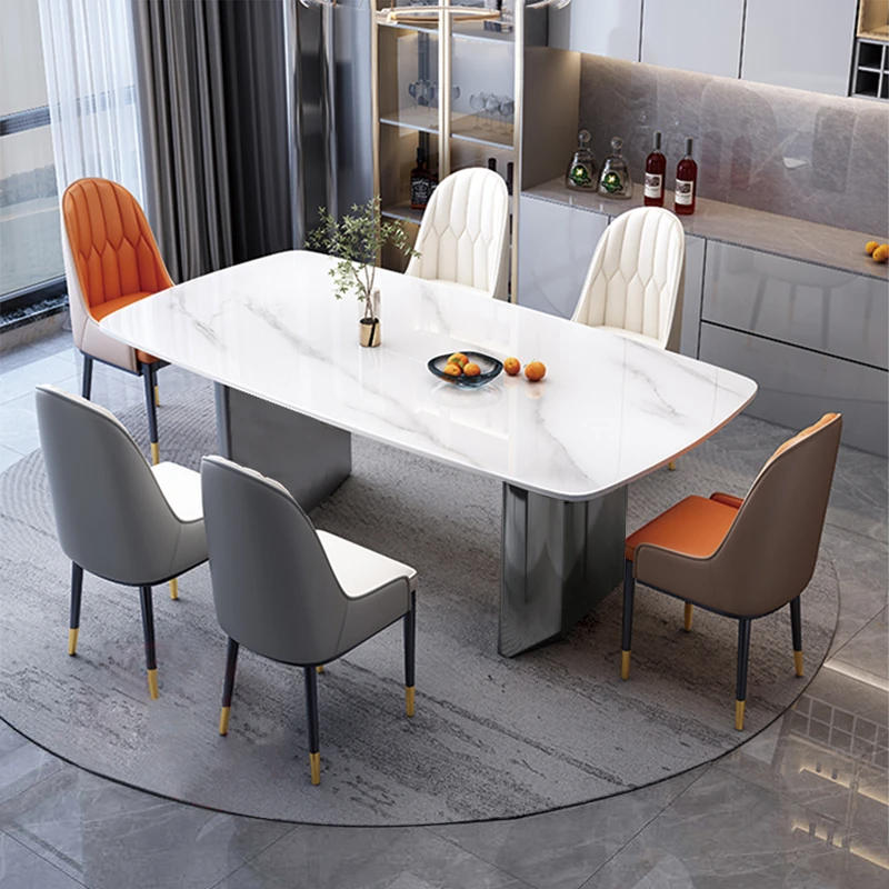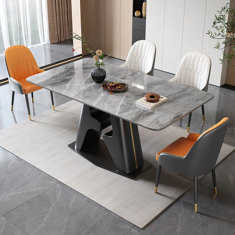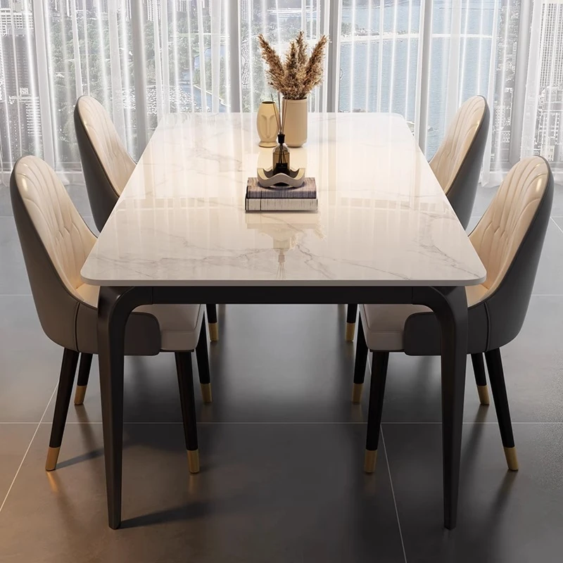 ラグジュアリーな晩森高級ロックプレートダイニングテーブル&チェアセット - 洗練されたモダンデザイン、コンパクトな居住空間にもぴったりな長方形テーブルで、贅沢な食卓体験をお楽しみください!