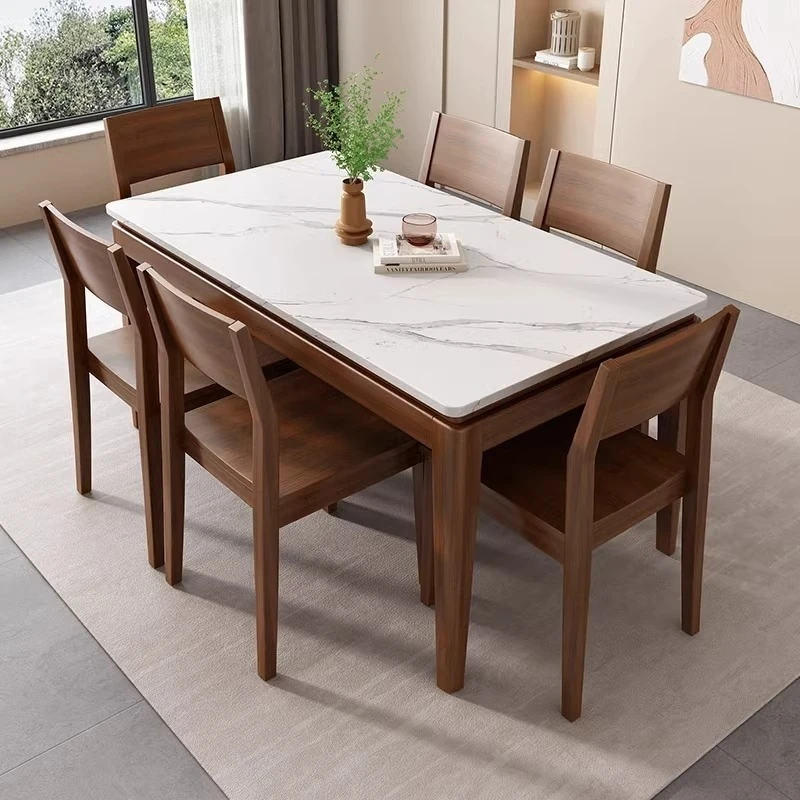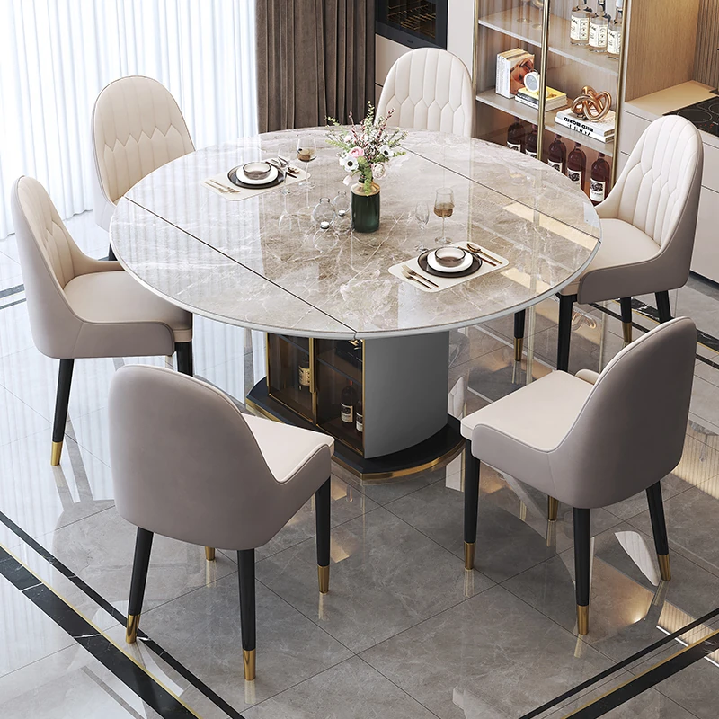 奈丘の岩板ダイニングテーブル - モダンでシンプルなデザイン、小型住宅向けの軽奢スタイル。伸縮可能で折りたたみ収納、スペース効率抜群のダイニングセットで快適な食事体験を!