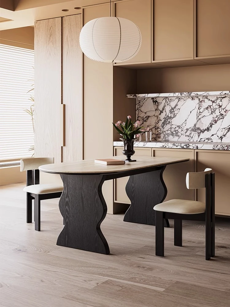オーシャンジェ2024年新作 フランス風ヴィンテージ実木ロックプレートダイニングテーブル&チェアセット デザイナーのクリエイティブアートダイニングテーブル