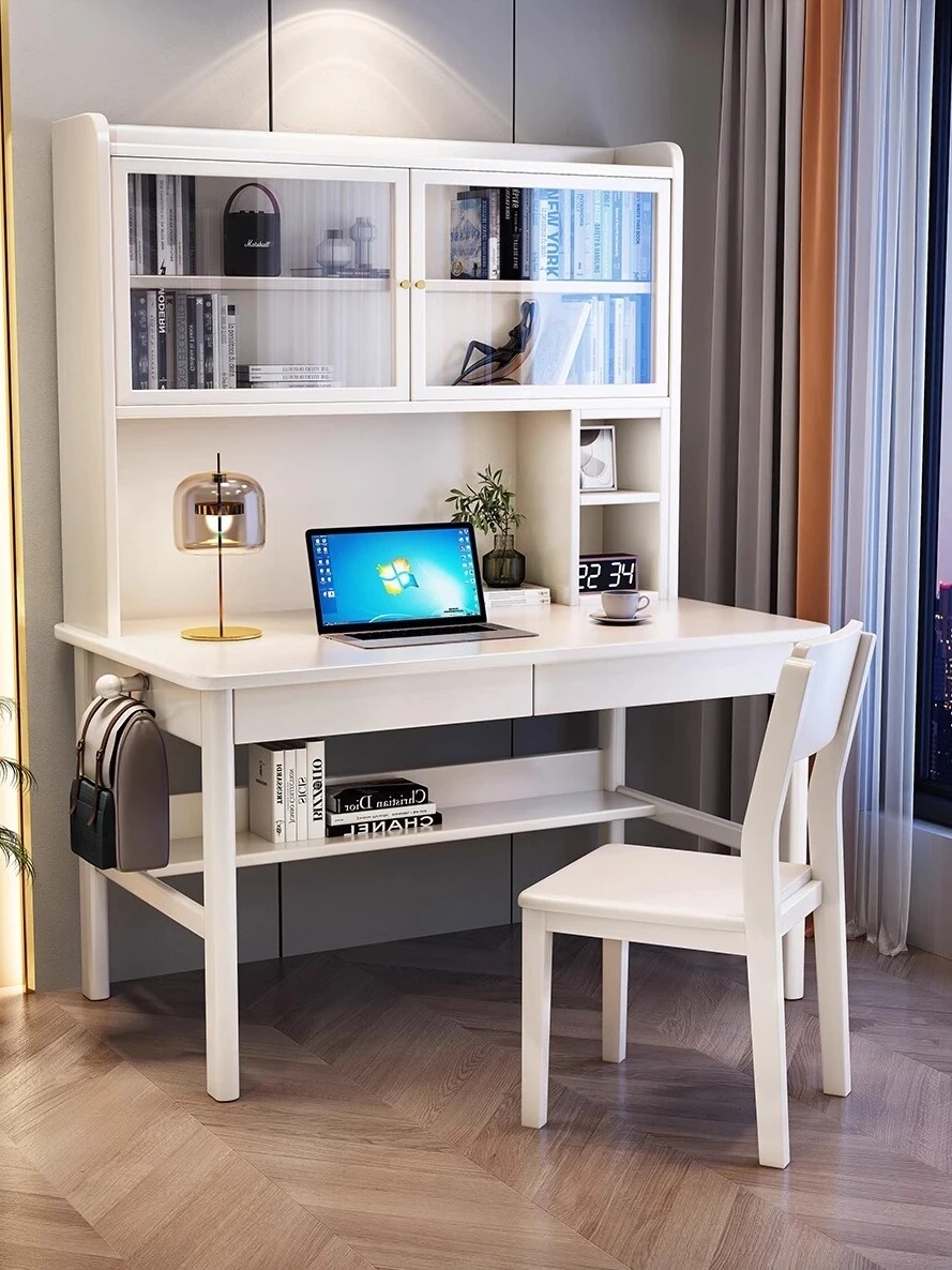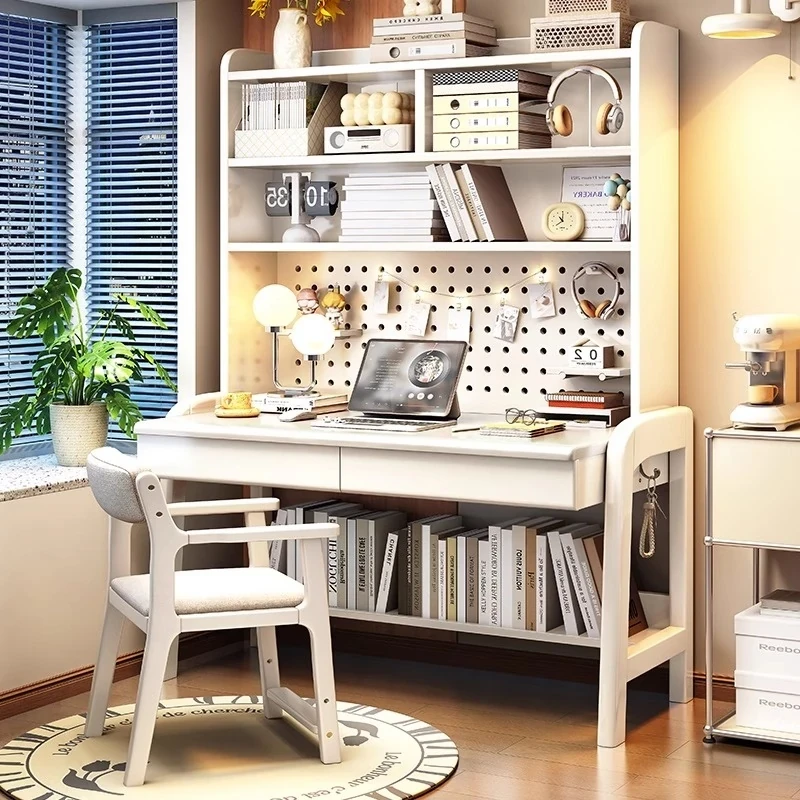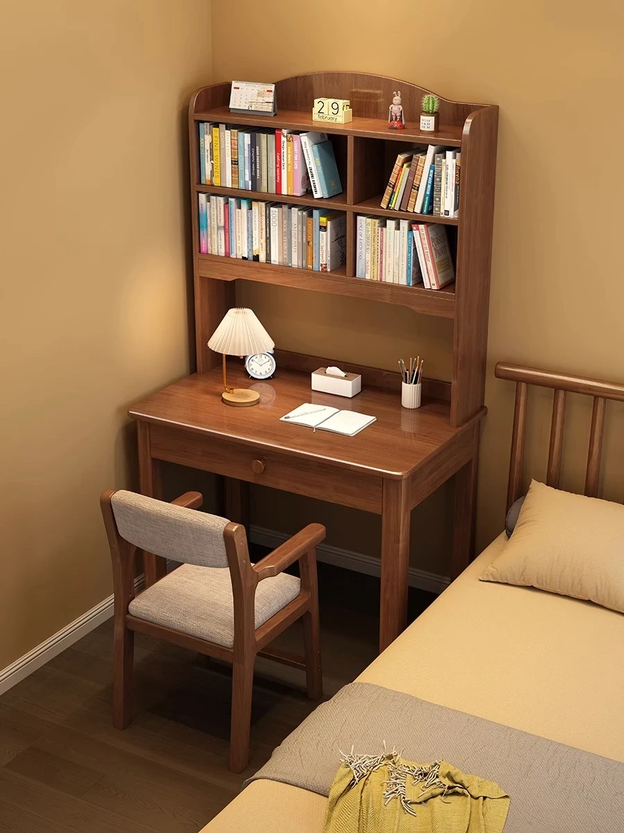 豪華な無垢材デスク兼本棚 - シンプルでスタイリッシュな学生向け学習デスク、現代の寝室にも最適!多機能で使いやすく、勉強が捗る空間を演出します。