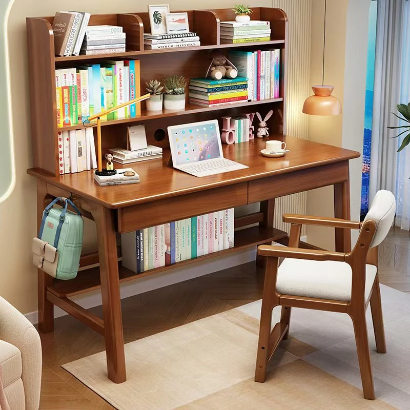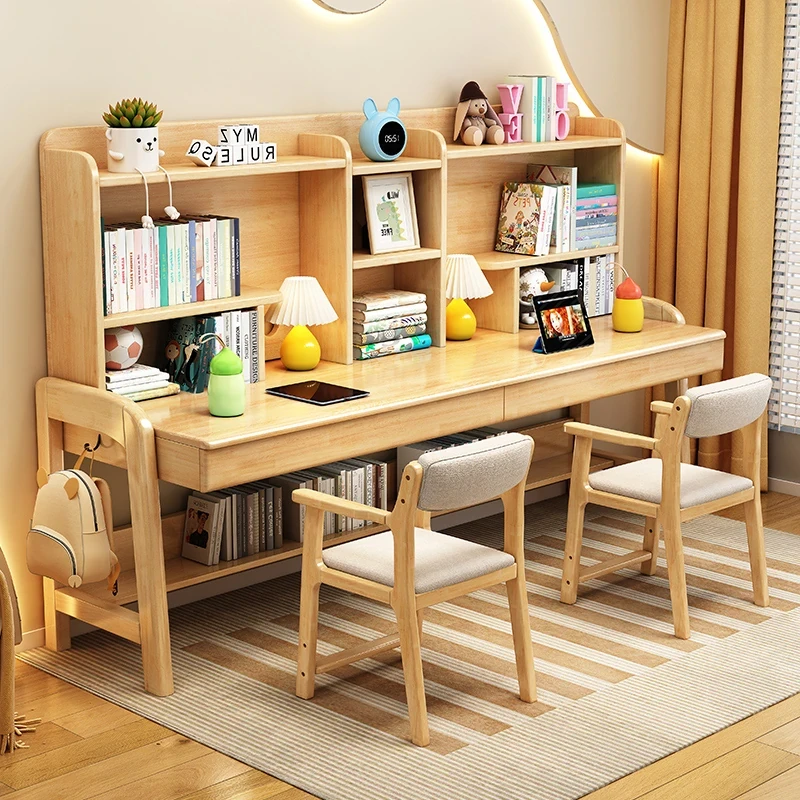 豪華な無垢材使用!子供用学習デスク・書棚一体型シンプルスタイル、家庭でも使いやすいパソコンデスク。中高生に最適な学習空間を提供します!