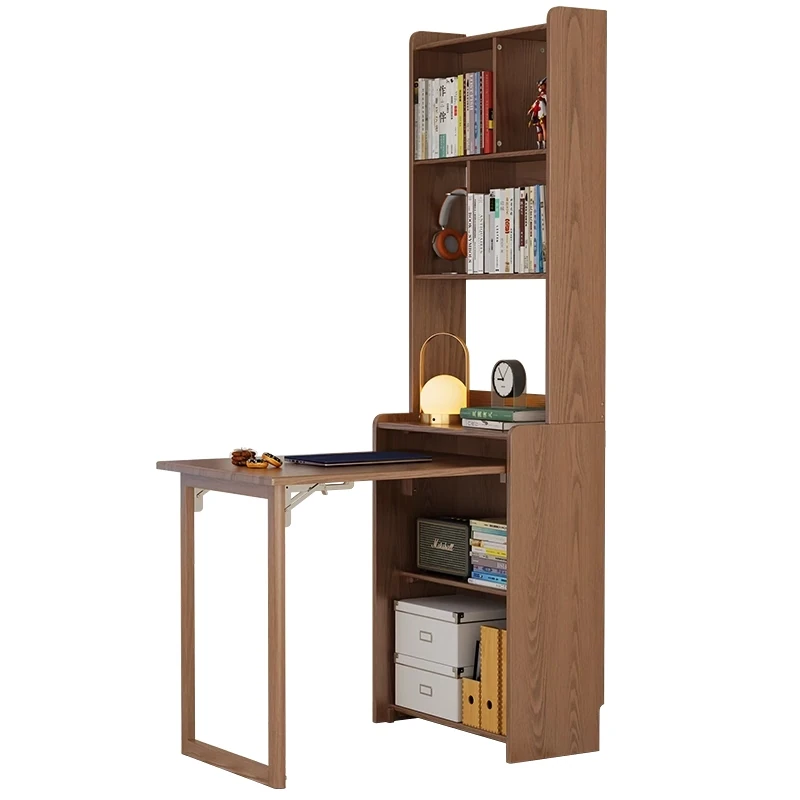 佐識の実木折りたたみデスク兼書棚 - コンパクトな寝室用パソコンデスク。小さなスペースでもおしゃれに、学習や作業にぴったりの収納力!