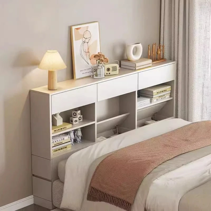 バイシー木製クリーム風ベッドサイドテーブル&ベッドフットキャビネット|洗練されたデザインの寝室収納棚&本棚|極薄衣類収納キャビネット|スタイリッシュでコンパクトなベッドサイド収納!