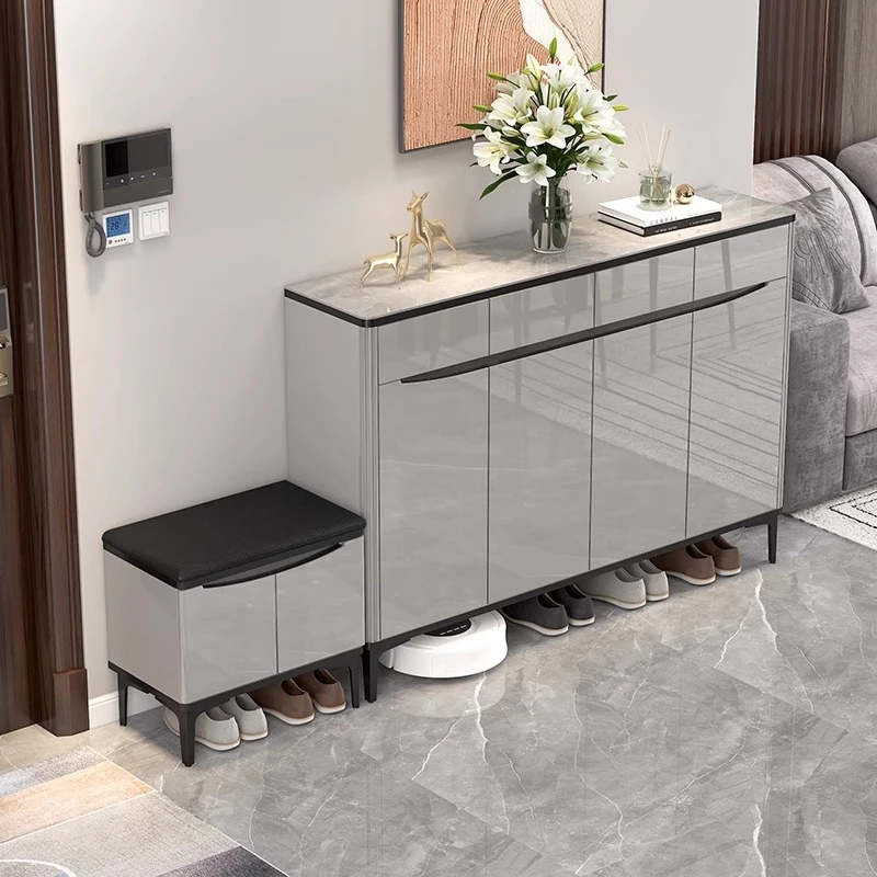 豪華な軽奢スタイルの岩板シューズキャビネット&シューズベンチ|現代的でシンプルなデザイン、玄関用の大容量収納|新作でおしゃれな居住空間を演出!