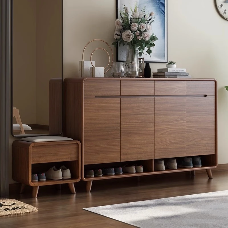 アイセン耐 中華スタイル玄関シューズキャビネット - 靴を履き替えられるベンチ付き!実用的な無垢材フレーム、エントランスにぴったりな収納力!お洒落な廊下を演出します。
