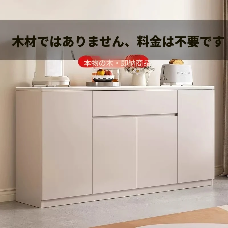 バイサイ木製クリーム風のサイドボード | キッチンやリビングにぴったり!現代的でシンプルなデザインの収納力抜群のお酒キャビネット。壁掛け可能でスペースを有効活用!おしゃれなインテリアに最適。