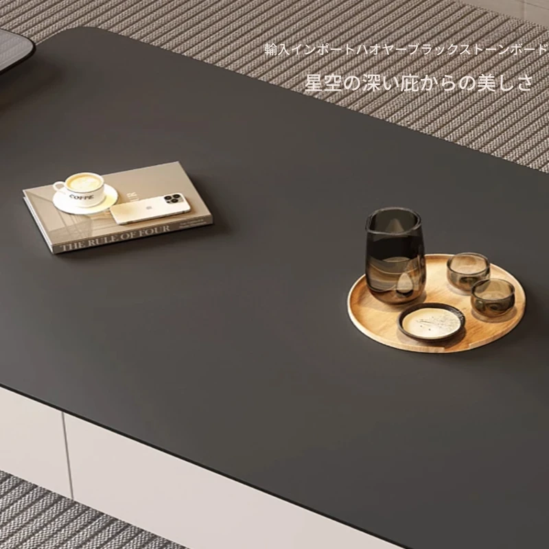 豪華なストーンテレビボードとコーヒーテーブルのセット - モダンでシンプル、小型のリビングルームに最適な軽奢キュビストスタイル。床置き電化製品にも対応!