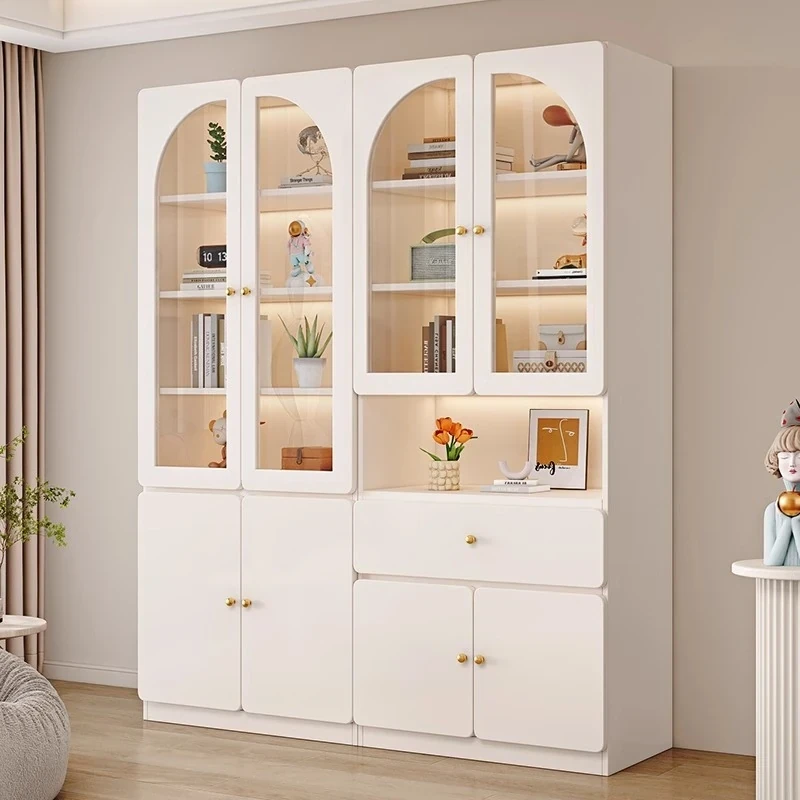 Elegant Cream Display Cabinet with Glass Doors - Premium Quality Living Room Bookshelf, Dust-Proof Design for Luxurious Home Decor