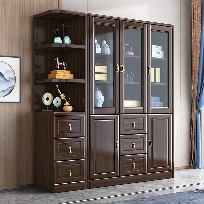 St. Bery New Chinese Style Walnut Wood Bookcase - Luxury Modular Solid Wood Storage Cabinet for Home Office, Elegant and Versatile Design