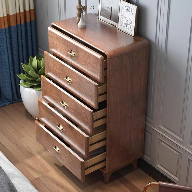 Elegant Solid Wood 5-Drawer Chest - New Chinese Style for Living Room and Entrance, Perfect Storage Solution for American-Style Bedrooms, Combining Functionality and Aesthetic Appeal.