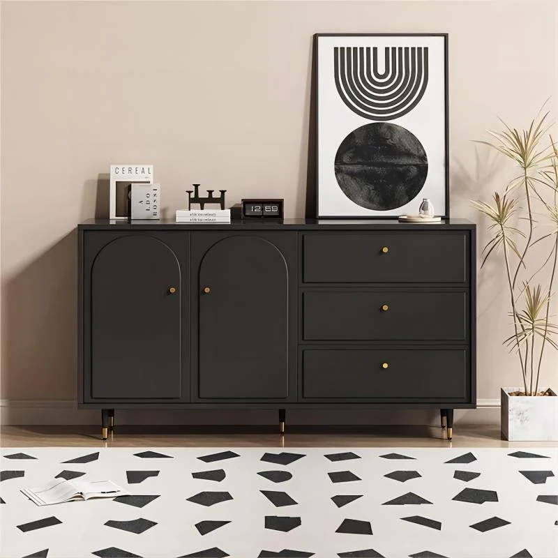 Elegant Solid Wood Sideboard with Rock Panel - Modern Minimalist Tea Cabinet, Chic Entryway Storage, Perfect for Home Kitchen Spaces.