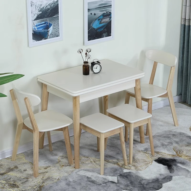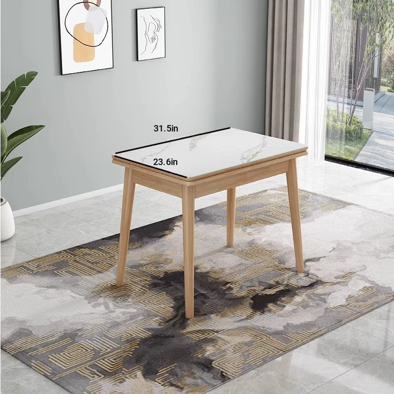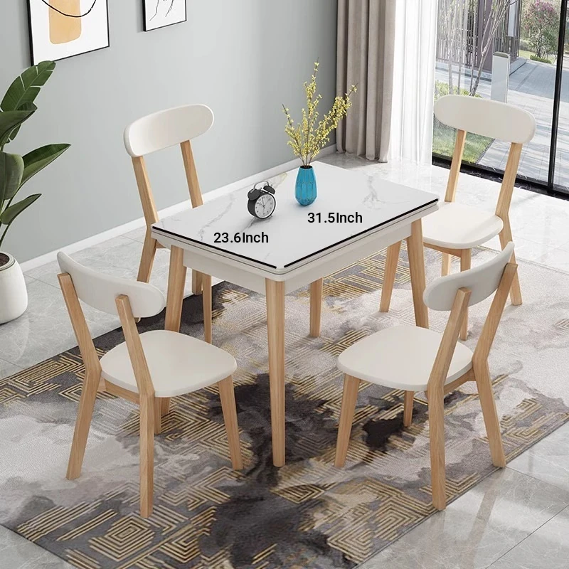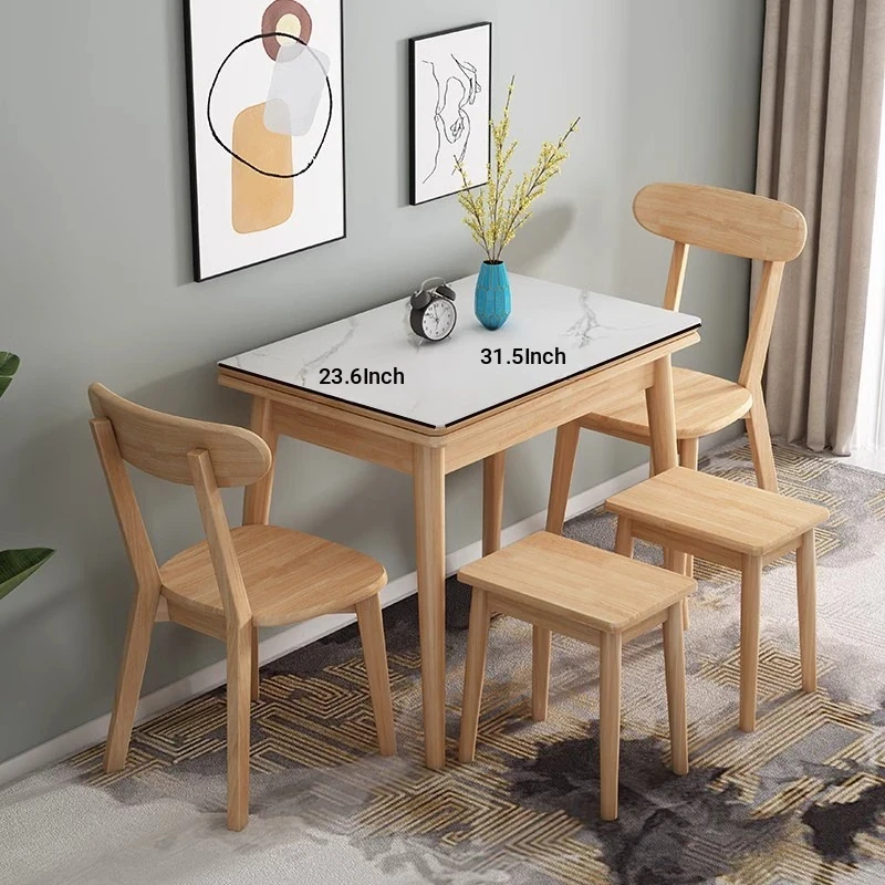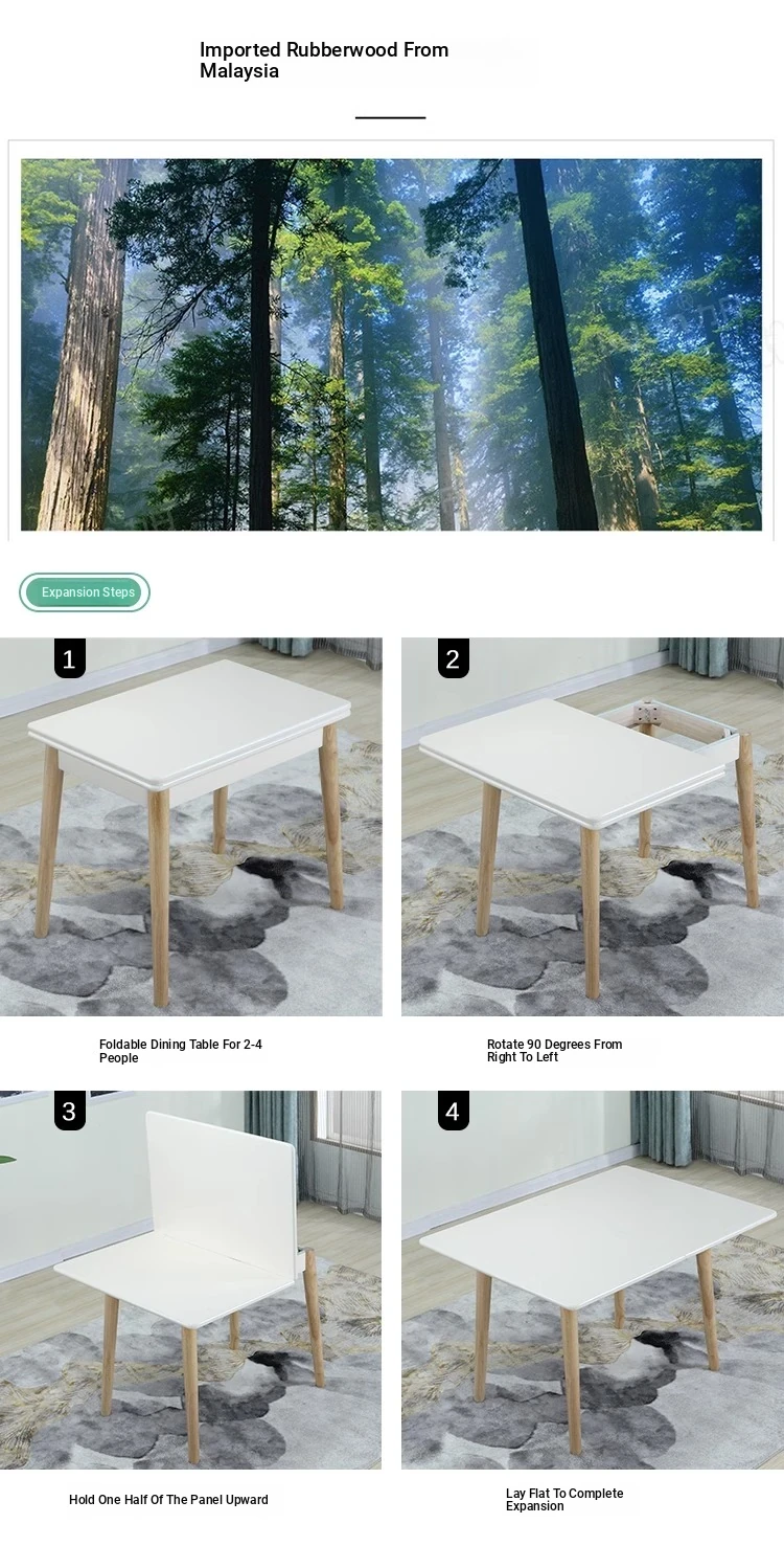 Compact Folding Dining Table Set for Small Spaces - Versatile Solid Wood Expandable Rectangular Table with Chairs - Stylish and Functional Home Solution