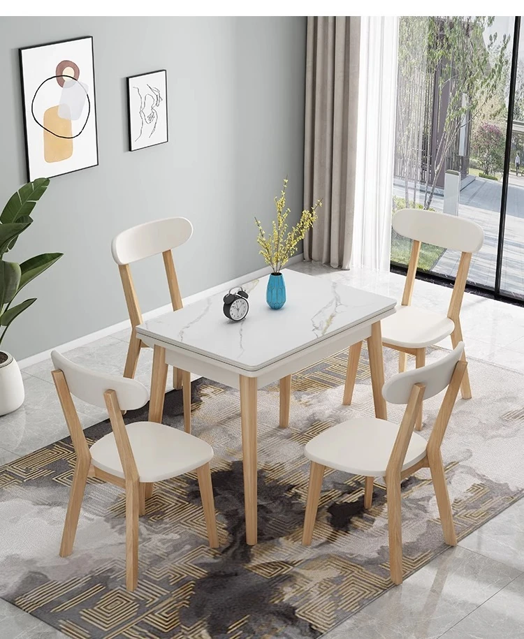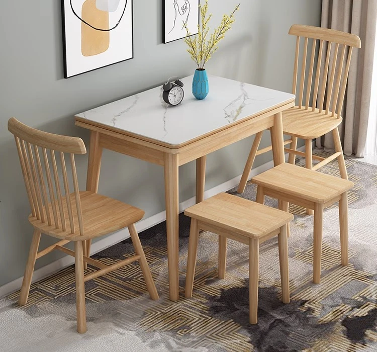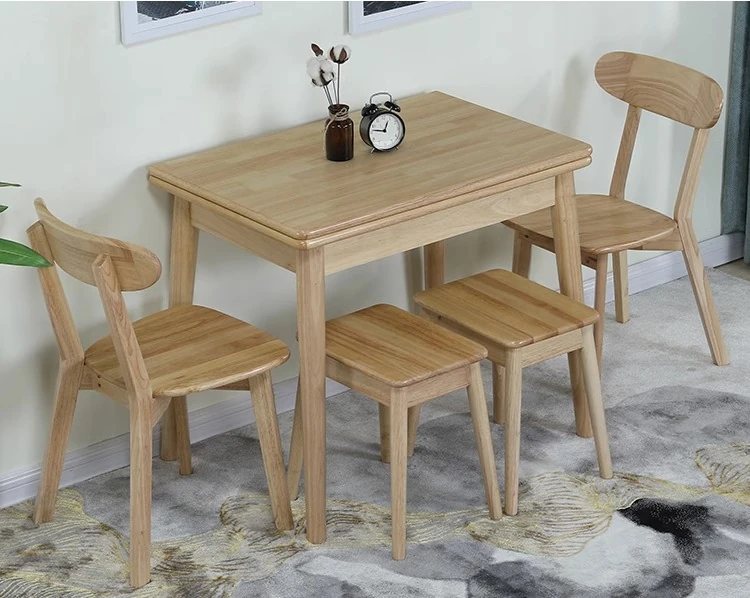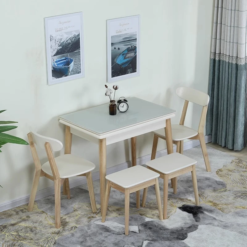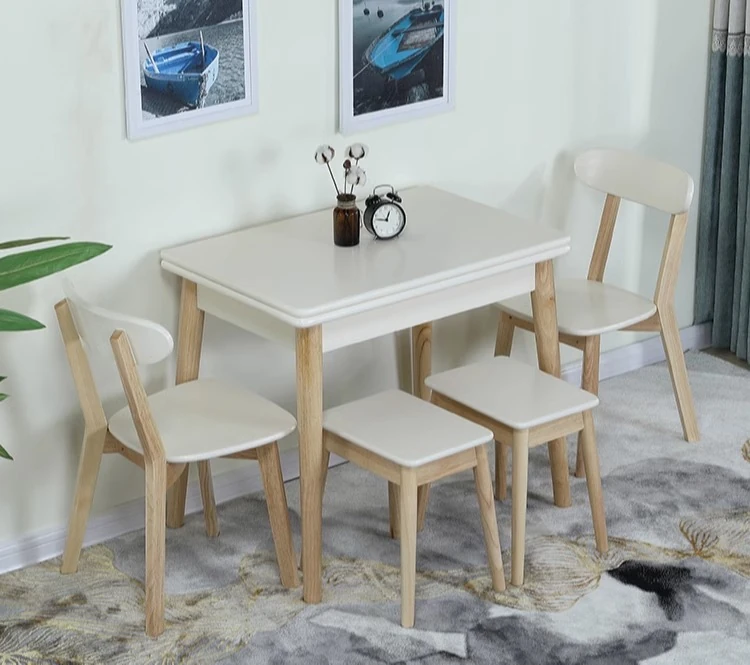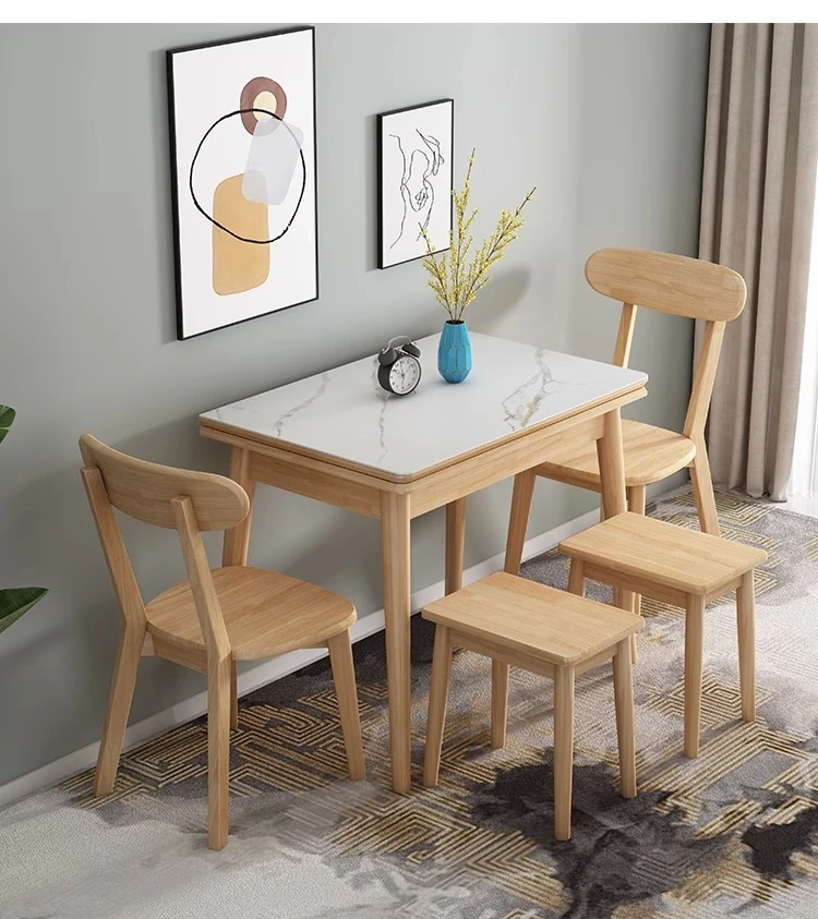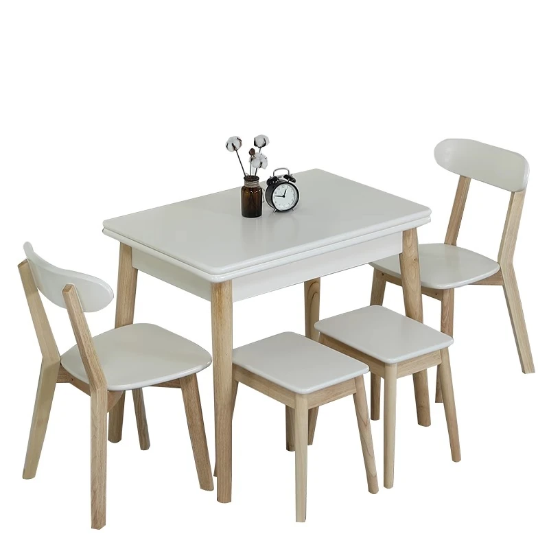 Compact Folding Dining Table Set for Small Spaces - Versatile Solid Wood Expandable Rectangular Table with Chairs - Stylish and Functional Home Solution