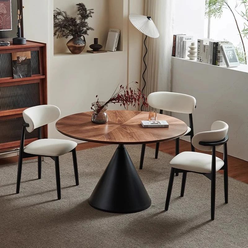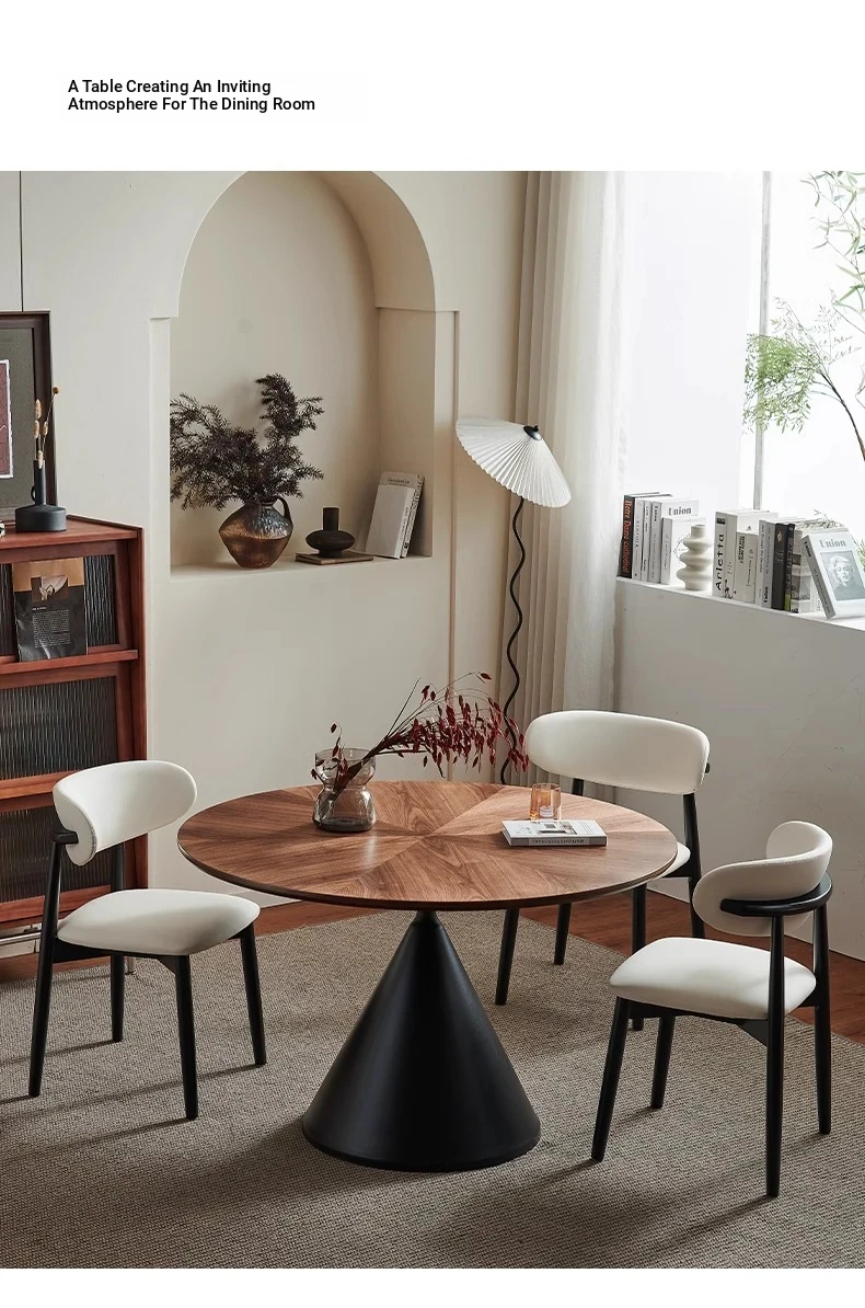 Abison Vintage Solid Wood Dining Table – French Style Round Table in Black Walnut for Cozy Homes – Perfect for Small Spaces!