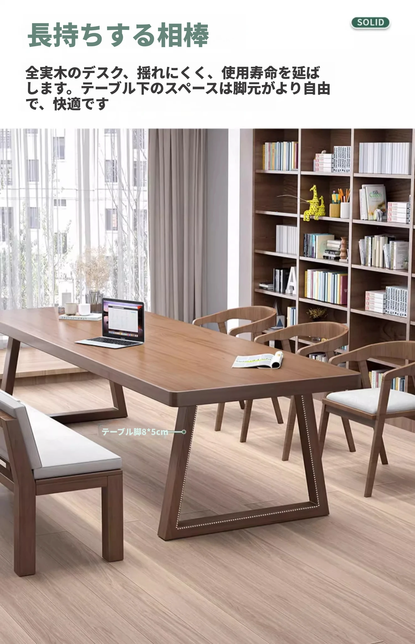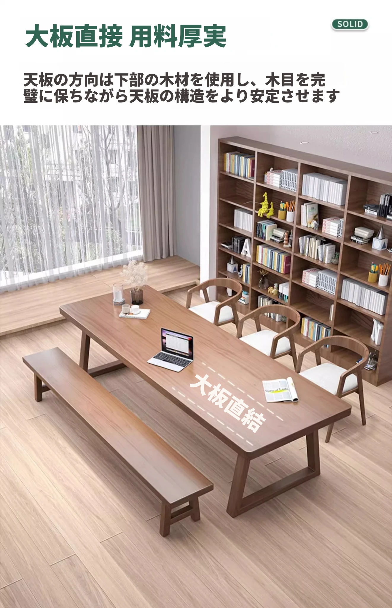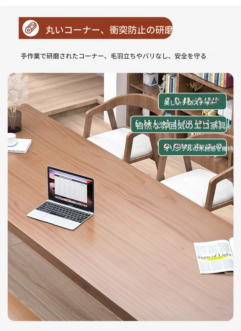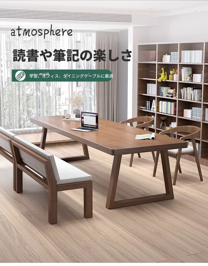 アイセングレード・北欧スタイルの無垢材ビッグデスク|シンプルなデザインの2人用学習机|家庭用オフィスデスク|リビングに最適なロングテーブル|快適に仕事・勉強できるワークスペースを提供!