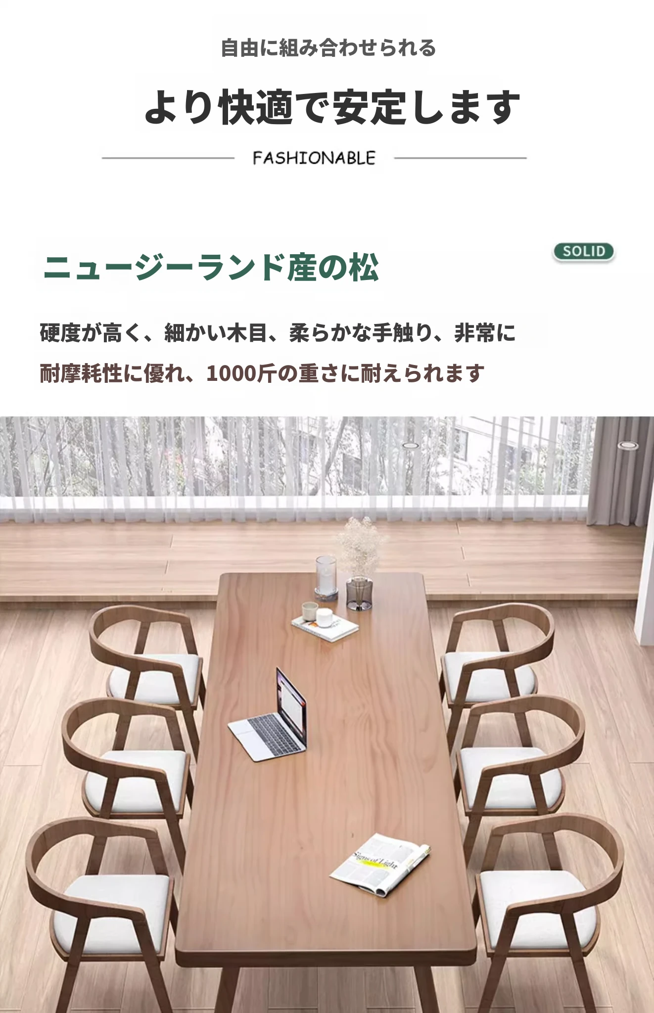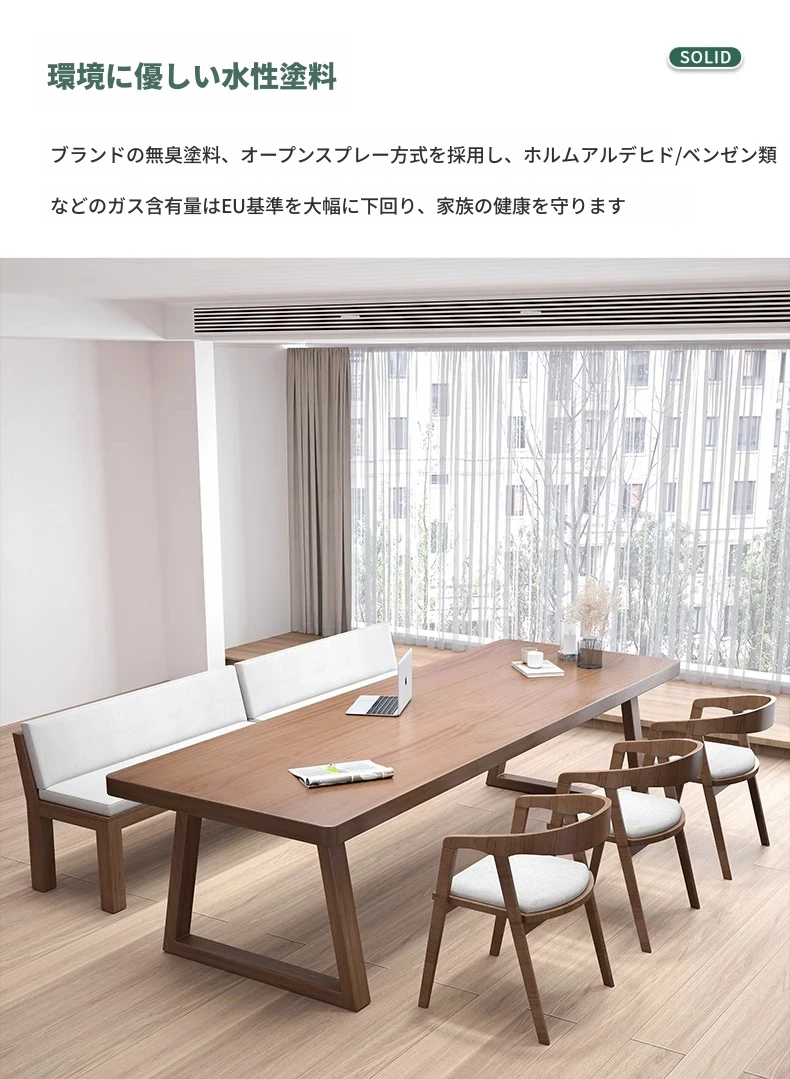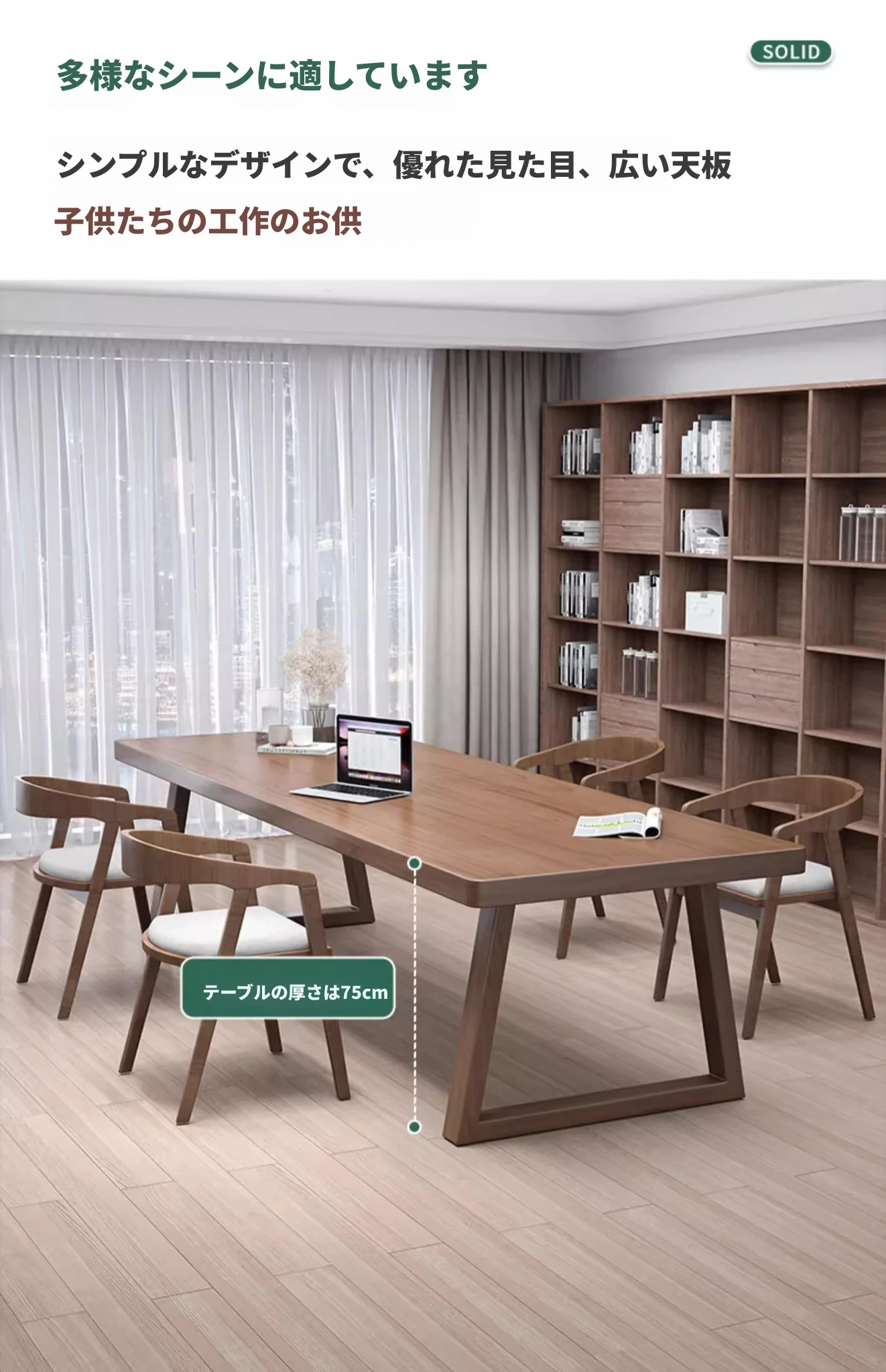 アイセングレード・北欧スタイルの無垢材ビッグデスク|シンプルなデザインの2人用学習机|家庭用オフィスデスク|リビングに最適なロングテーブル|快適に仕事・勉強できるワークスペースを提供!