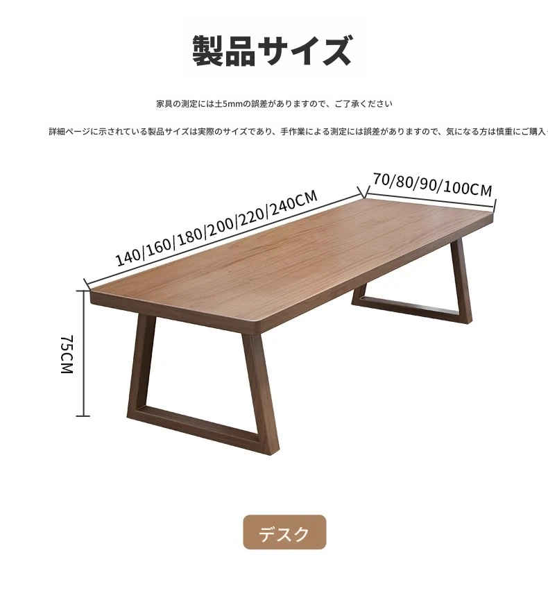 無垢材ロングテーブル(120_60_75)板厚5cm