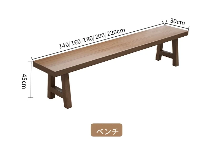 無垢材ロングテーブル(220_90_75)板厚5cm