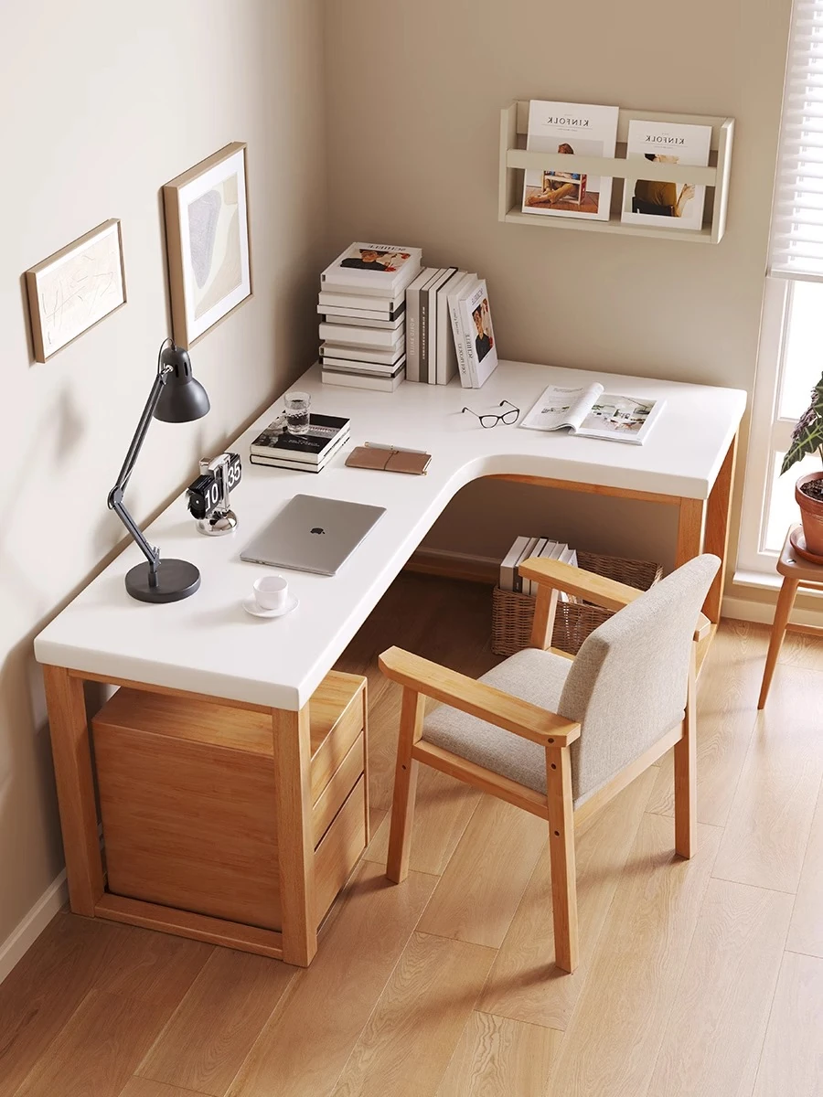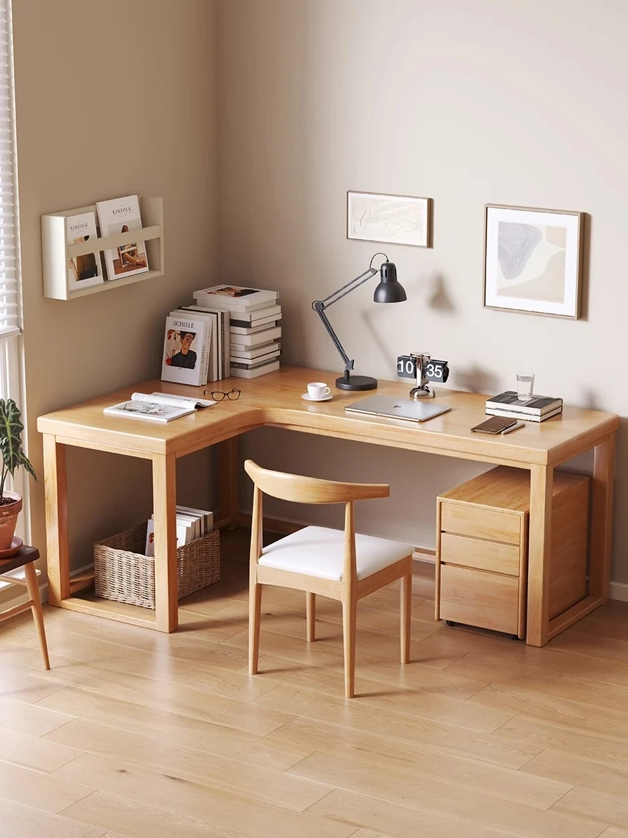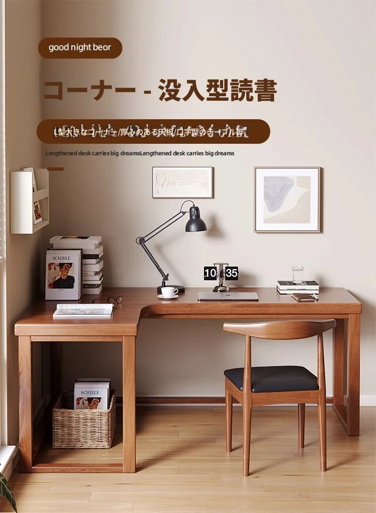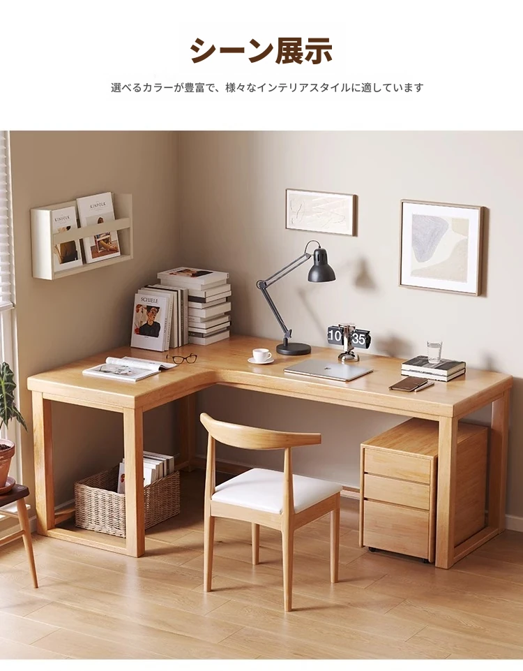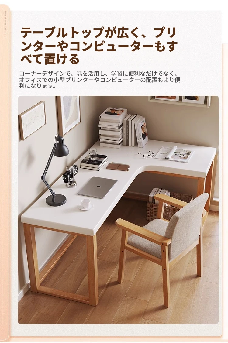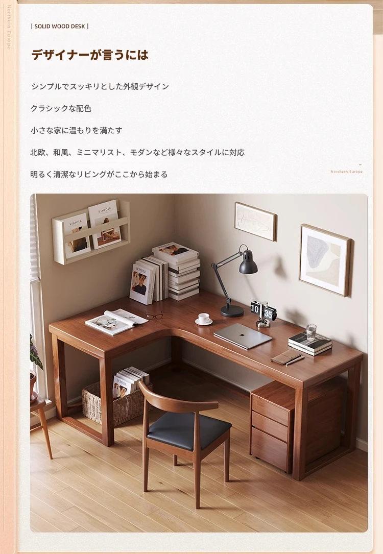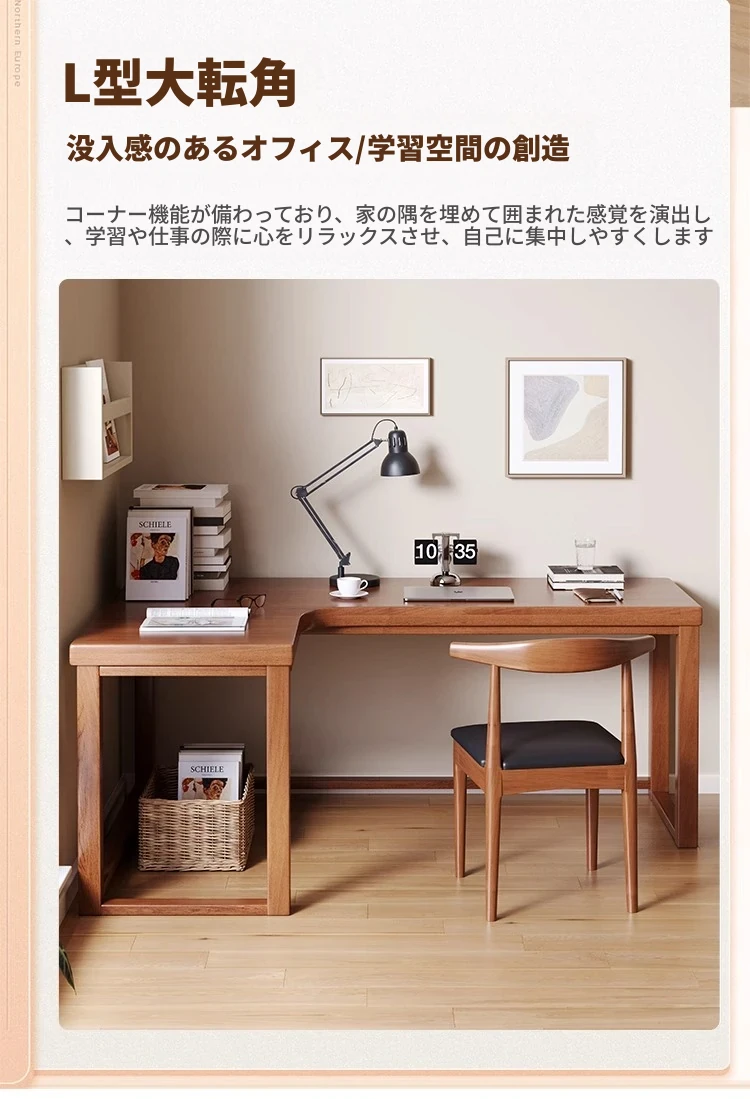 ワノウ実木L型コーナーデスク&チェアセット|スタイリッシュなワークスペース|寝室向けの壁付書き物デスク|デスクトップPCにも最適!