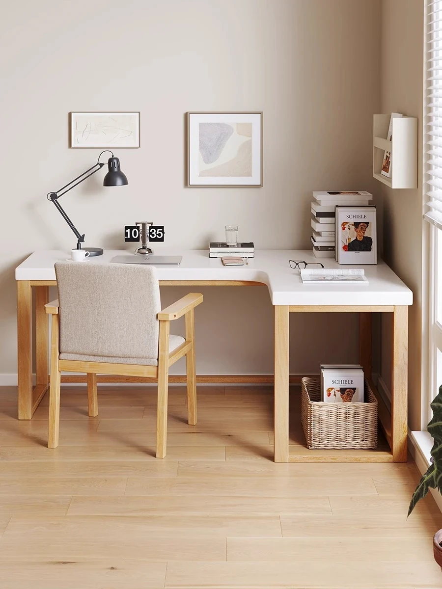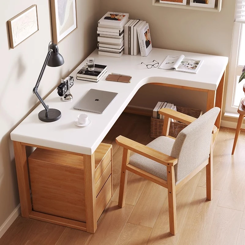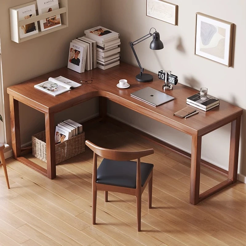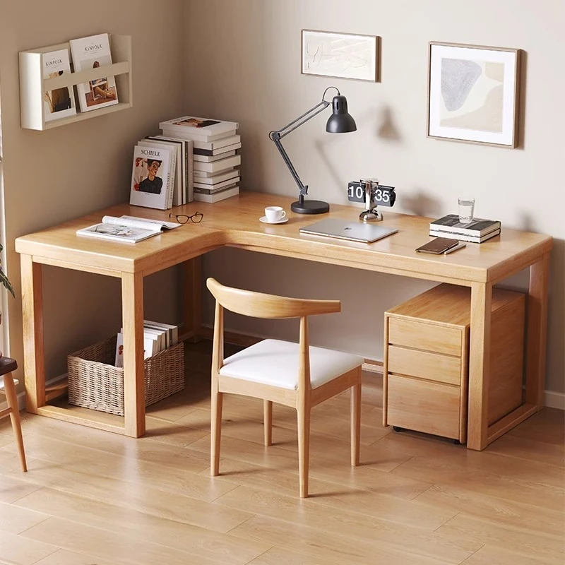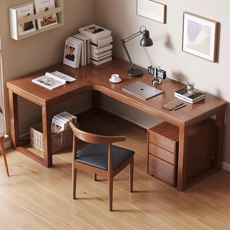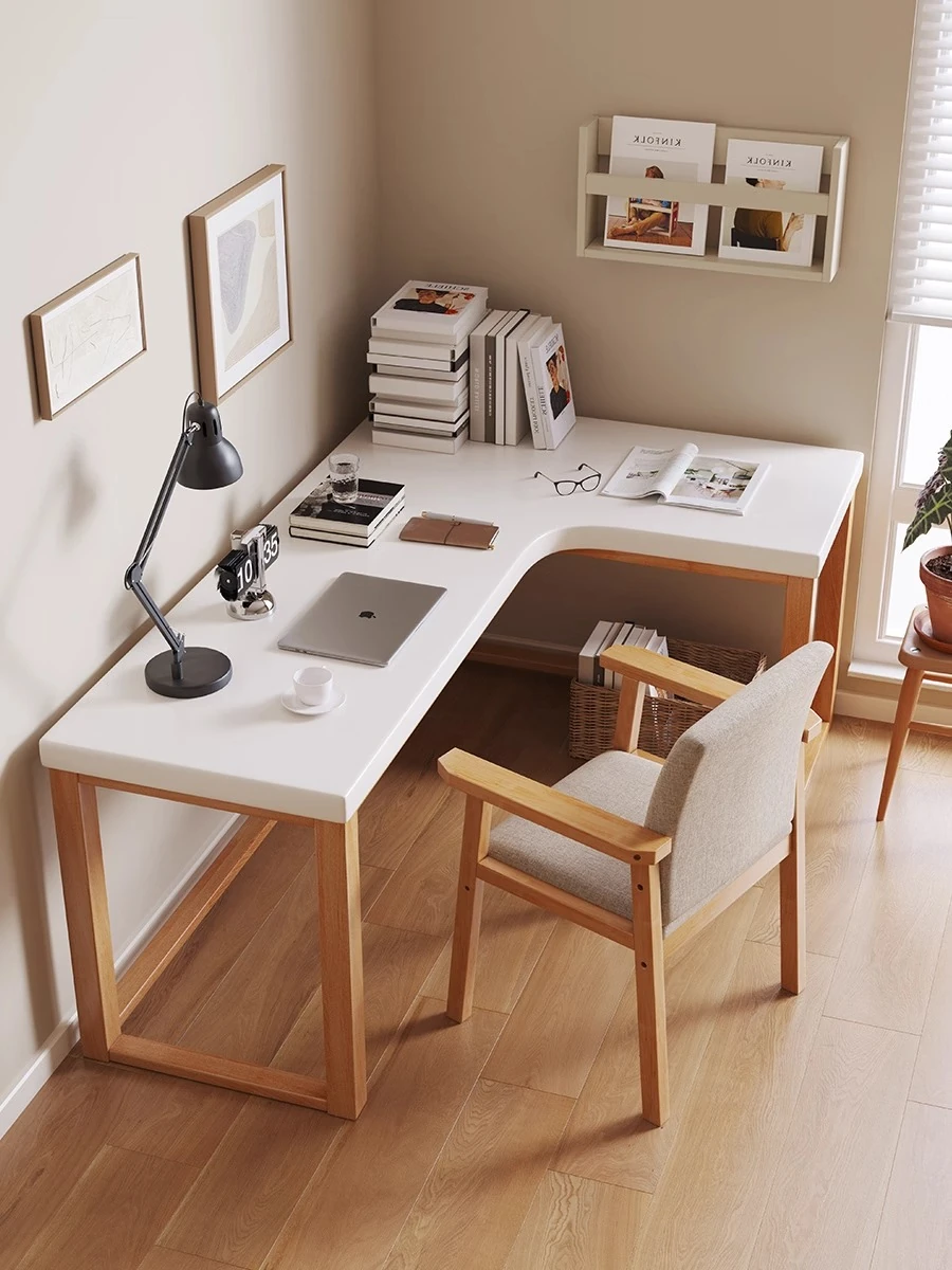 ワノウ実木L型コーナーデスク&チェアセット|スタイリッシュなワークスペース|寝室向けの壁付書き物デスク|デスクトップPCにも最適!