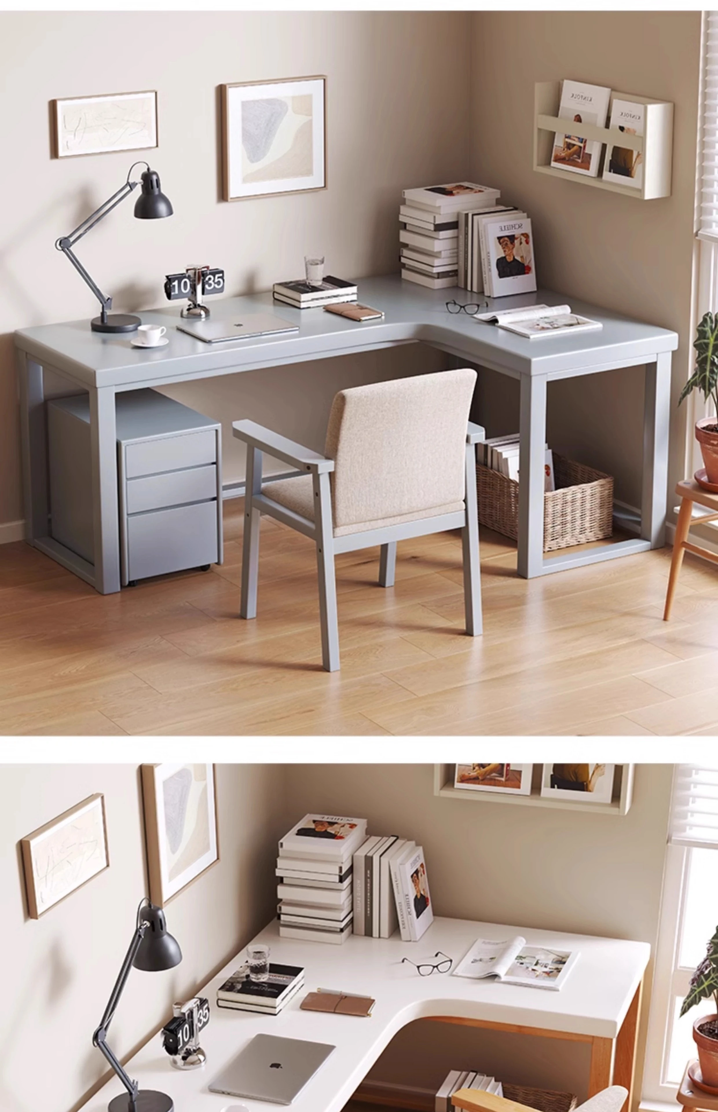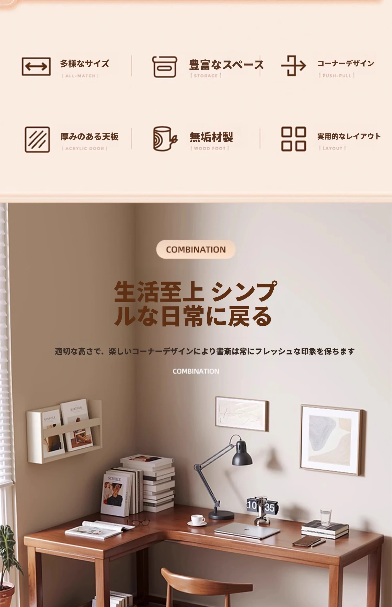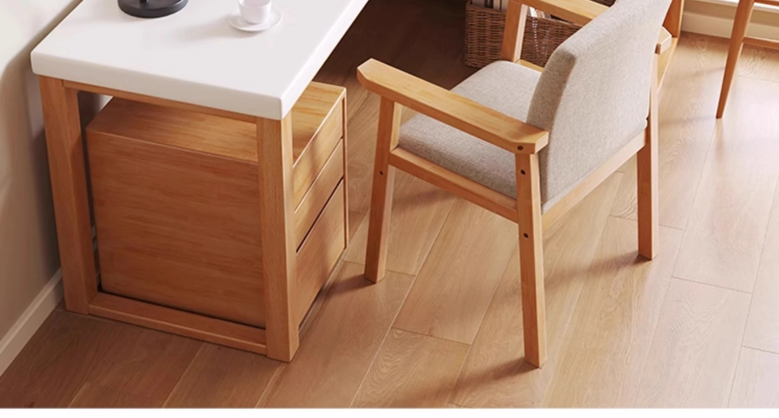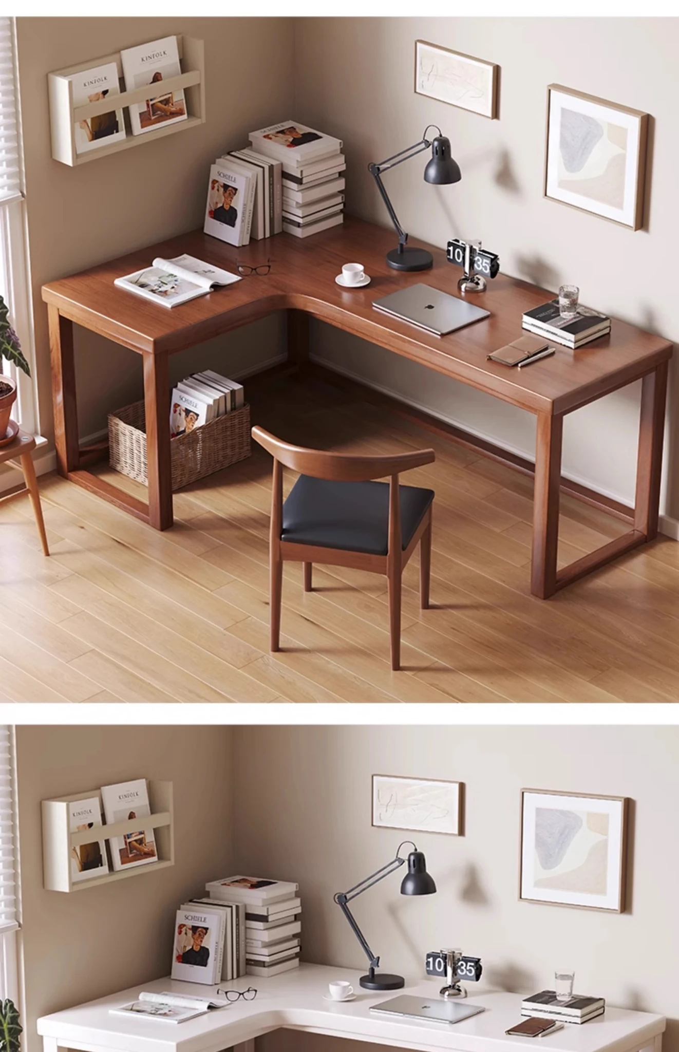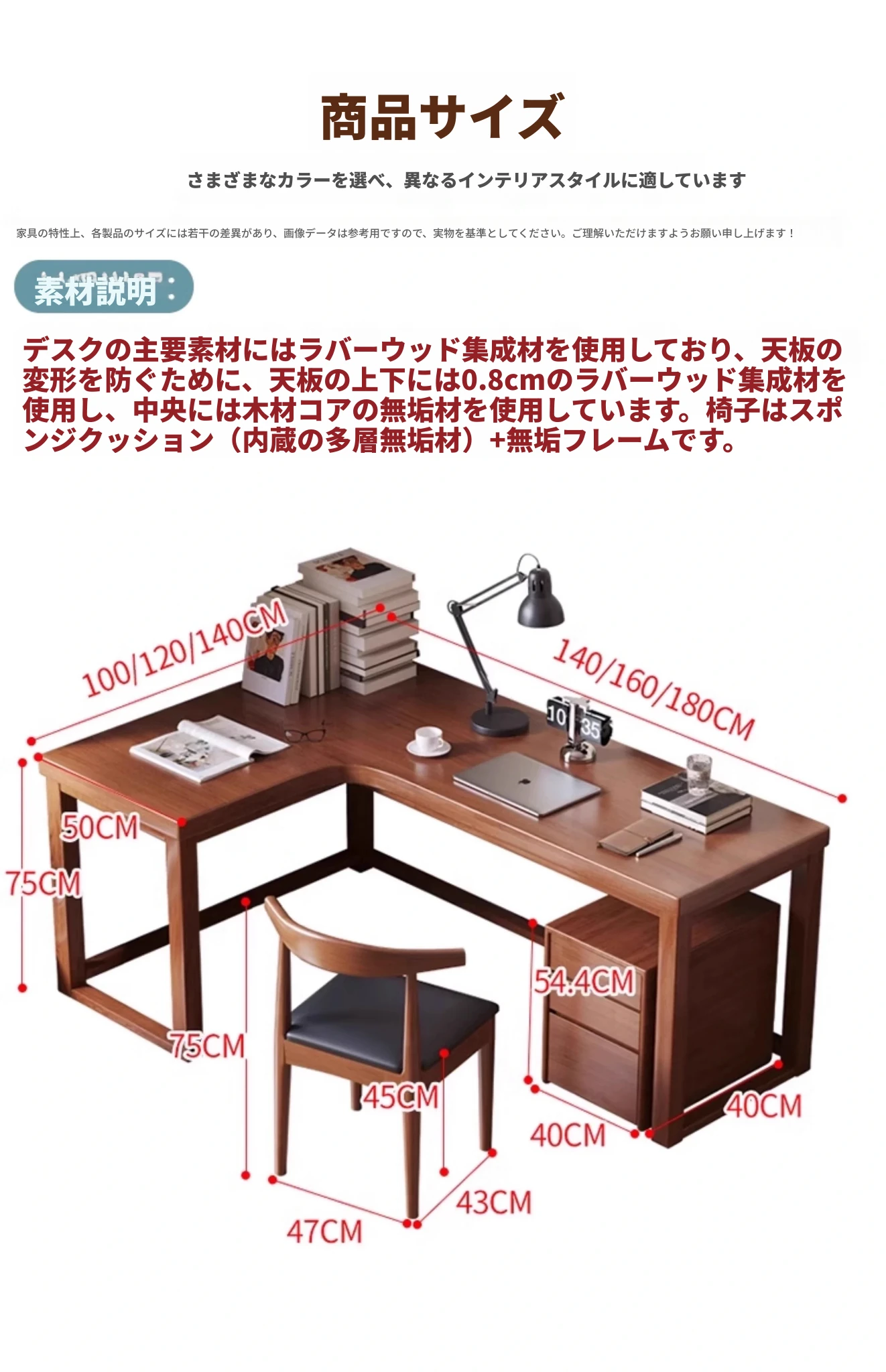 ワノウ実木L型コーナーデスク&チェアセット|スタイリッシュなワークスペース|寝室向けの壁付書き物デスク|デスクトップPCにも最適!