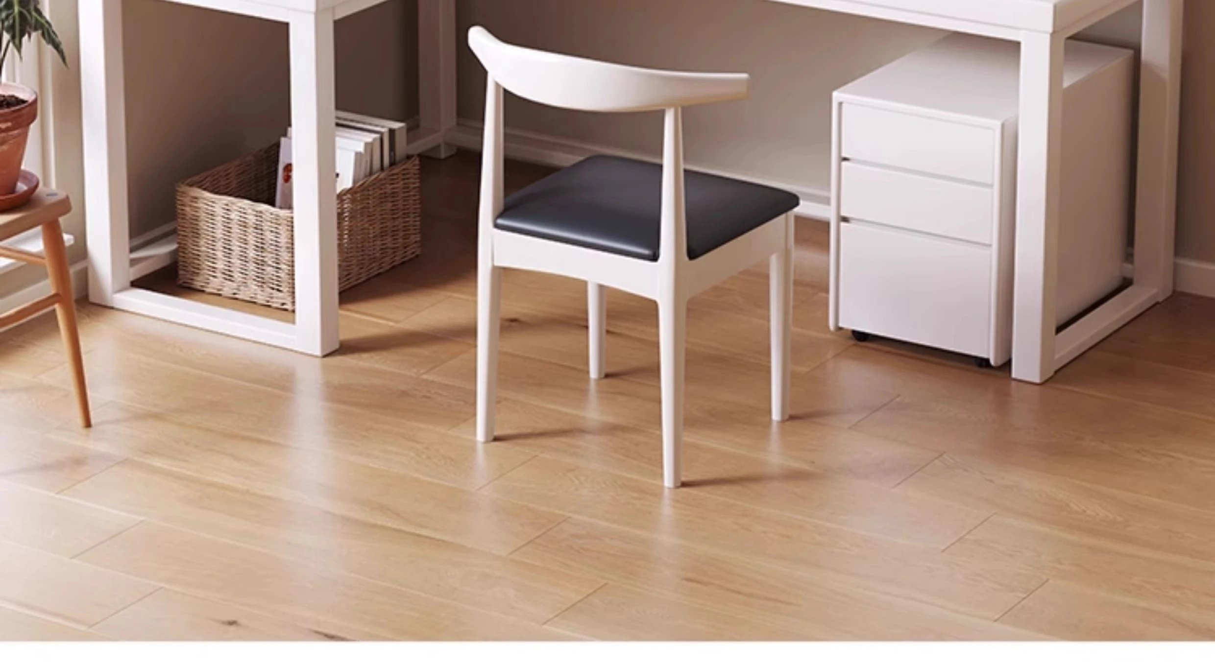 FDB03#オリジナルホワイト単テーブル+カーブバックチェア+サイドキャビネット【テーブル天板の木材厚4cm】