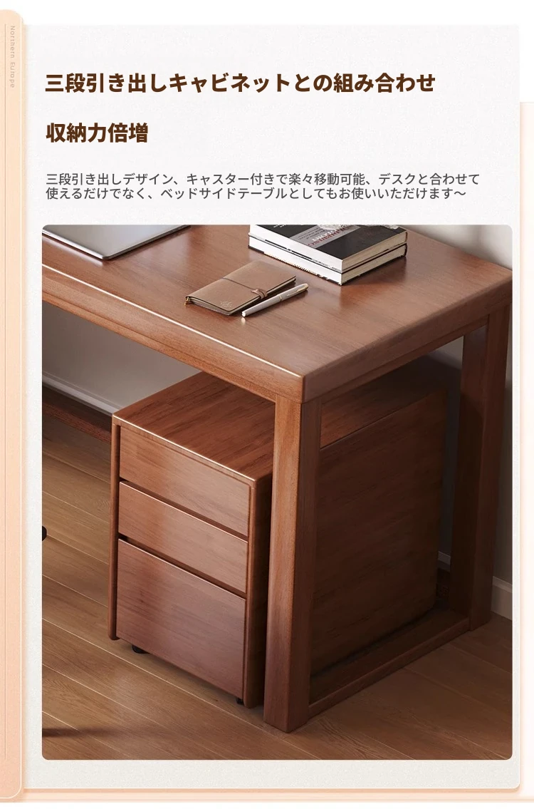 FDB03#ウォールナット色の単テーブル+サイドキャビネット - 注文時にメッセージで補助位置左/右【天板厚4cm】