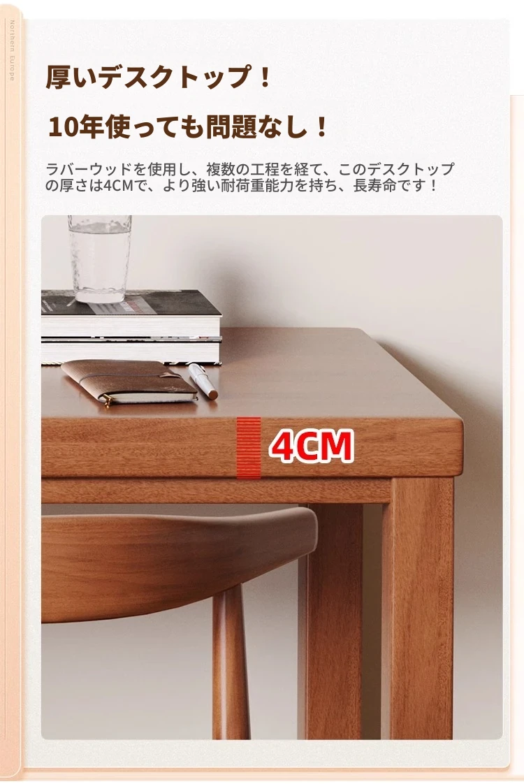 FDB03#ナチュラルウッドカラーのダイニングテーブル - 注文時にメッセージで位置を左/右とお知らせください【天板の木材厚4cm】