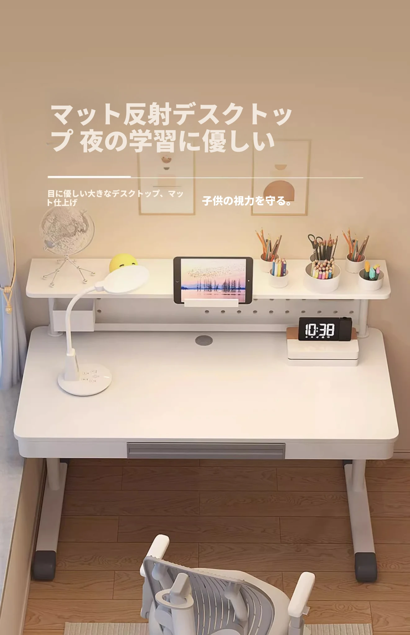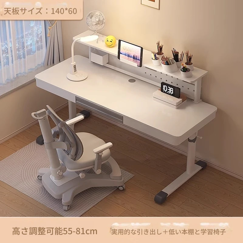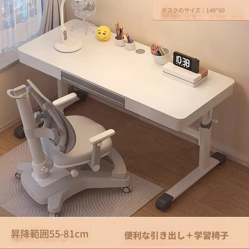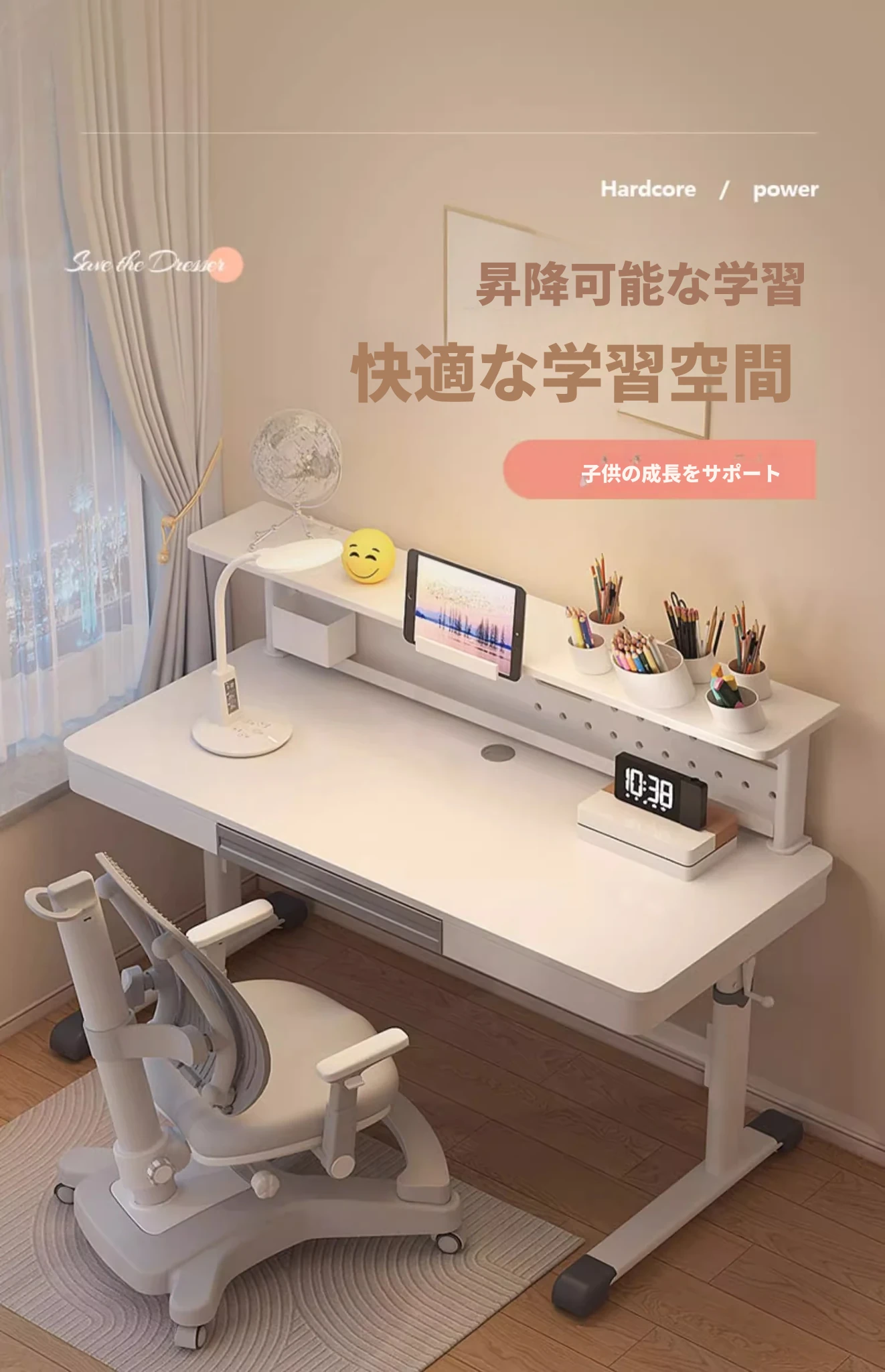エイセングレードの昇降式学習デスク - 子供用の最適な勉強環境を提供!小学生向けの快適なデスクチェアセット。自宅での学習にぴったりな書きやすいデスクです。
