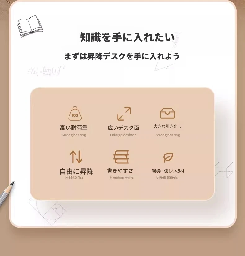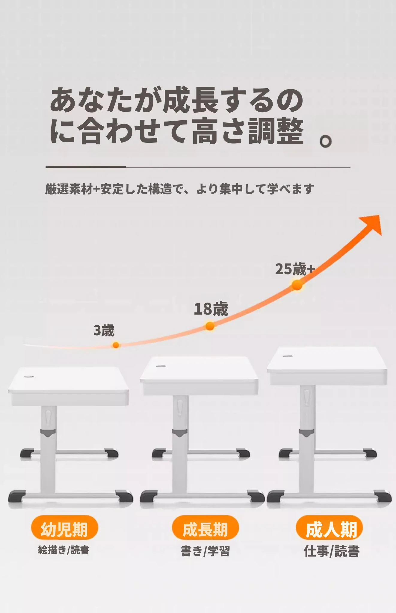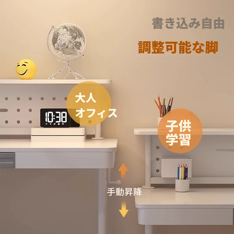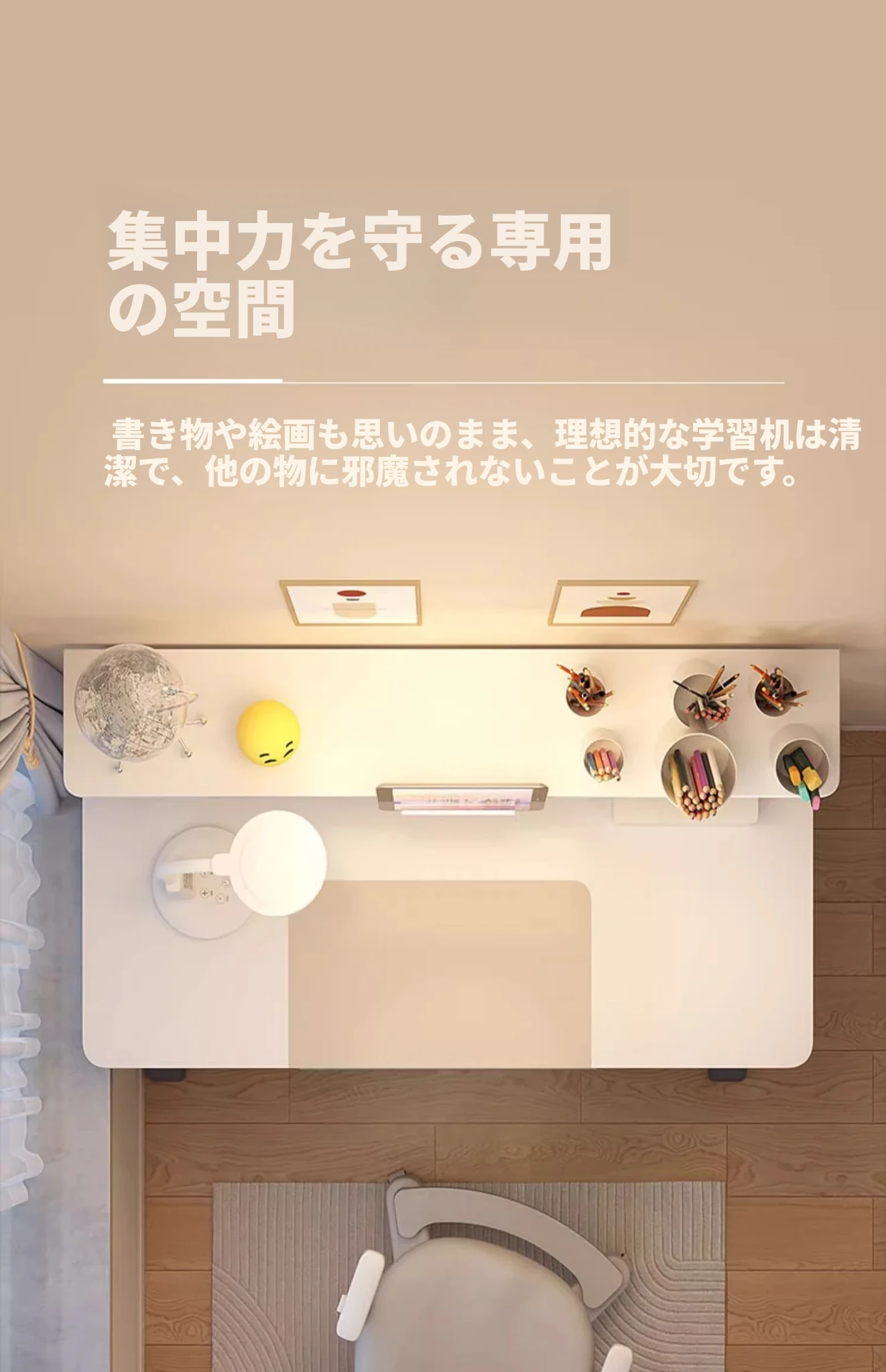 エイセングレードの昇降式学習デスク - 子供用の最適な勉強環境を提供!小学生向けの快適なデスクチェアセット。自宅での学習にぴったりな書きやすいデスクです。