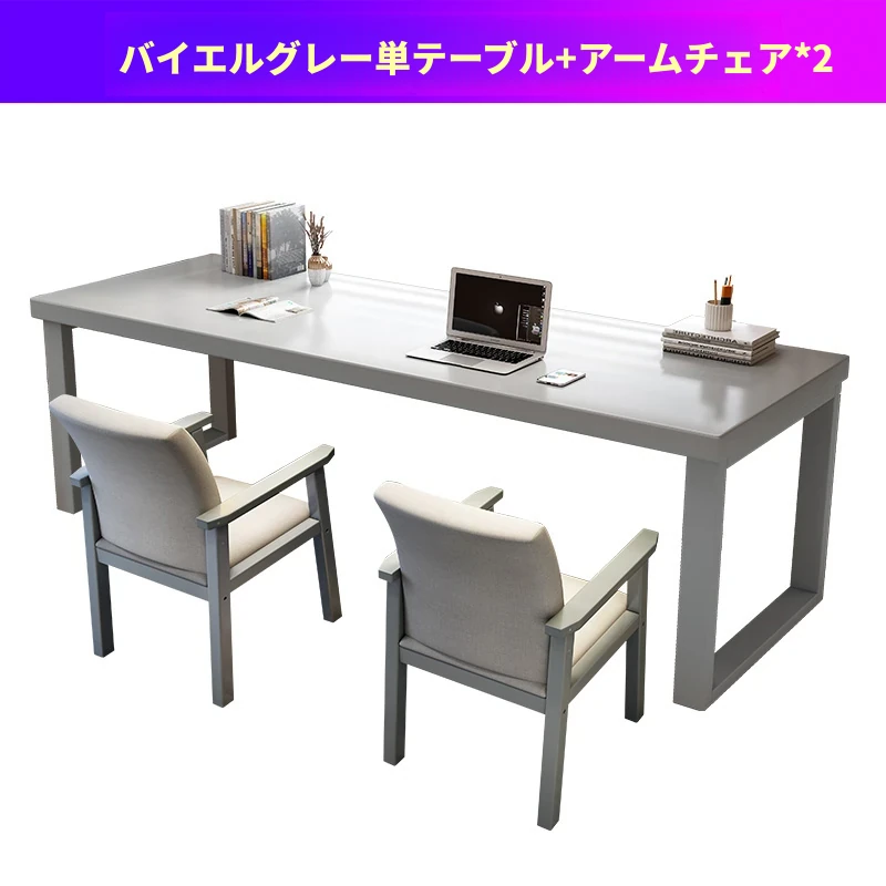バイオレットグレーの単テーブル+アームチェア*2(テーブルトップ4cm厚)