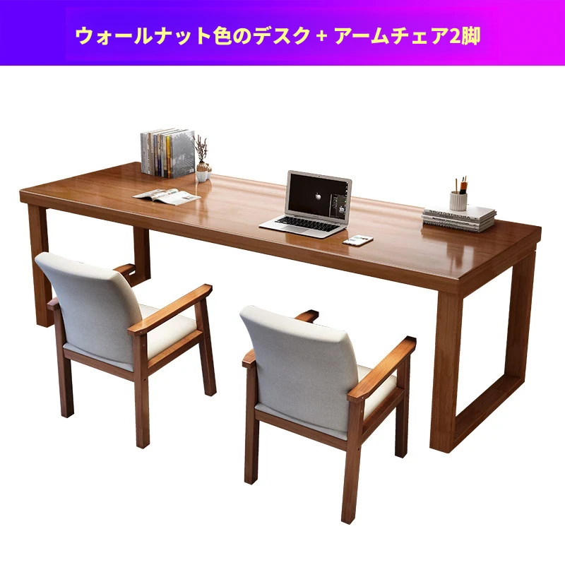 ウォールナット色の単テーブル+アームチェア*2(テーブルトップ4cm厚)