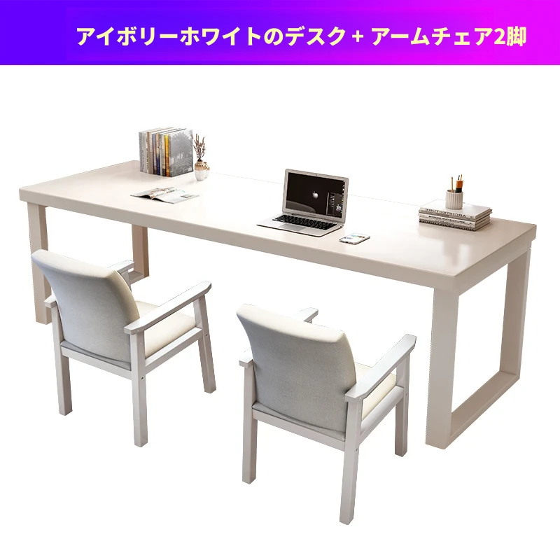 アイボリーホワイトの単テーブル+アームチェア*2(テーブルトップ4cm厚)