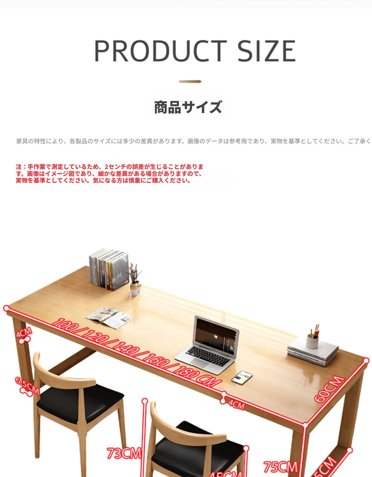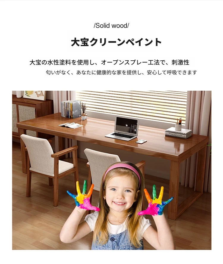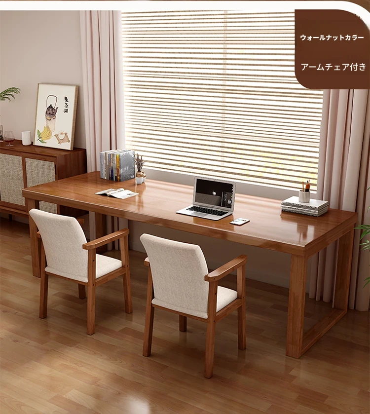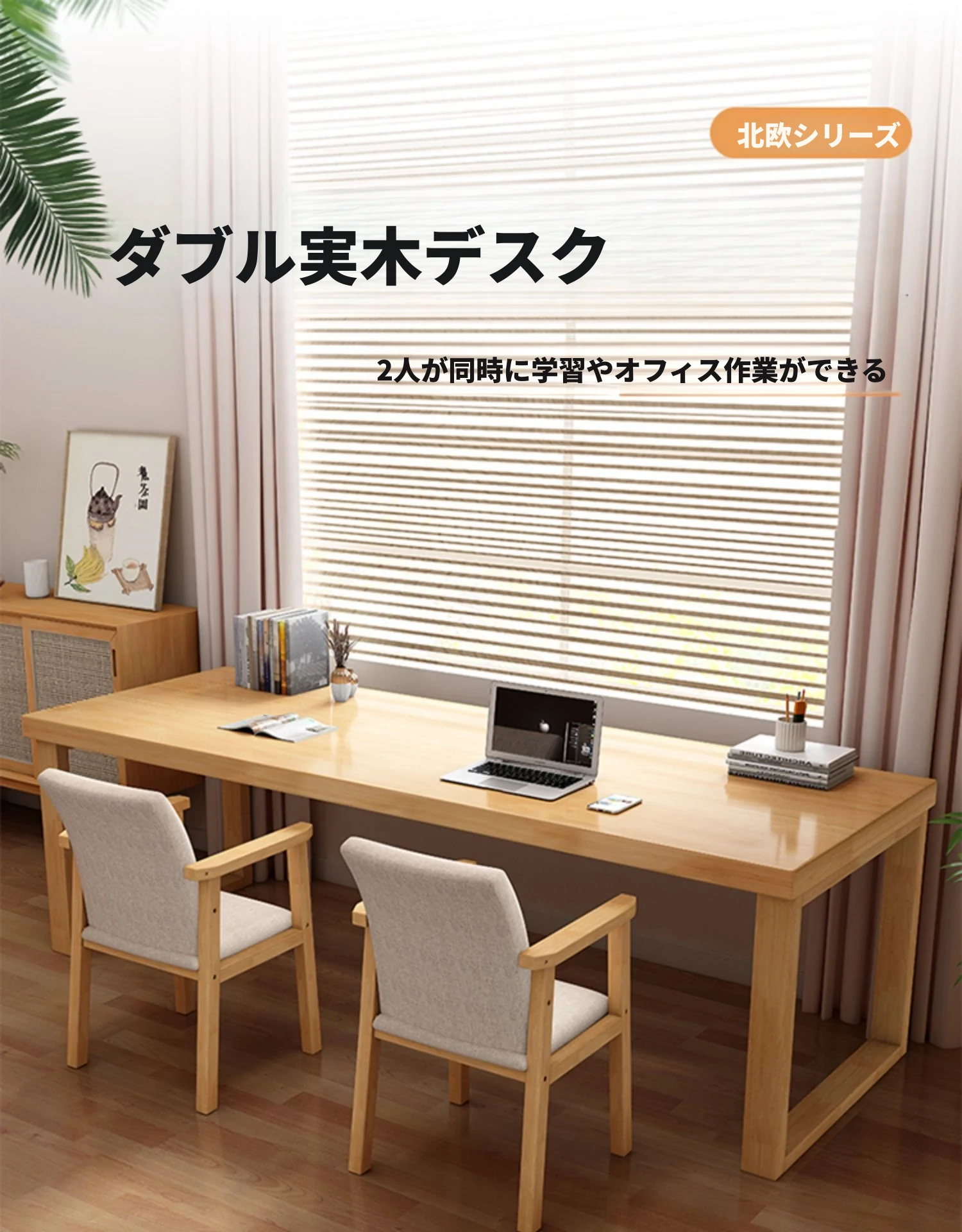 アイスマイ 無垢材 ダイニングデスク 丸ごと木の温もりを感じる2人用 学生・在宅ワーク・書斎用の快適なパソコンデスク おしゃれなロングテーブル どんな部屋にも合うデザイン【贈り物にも最適】
