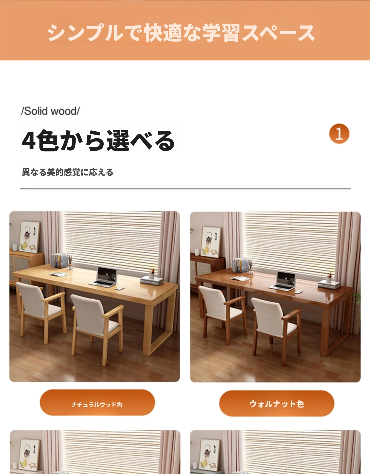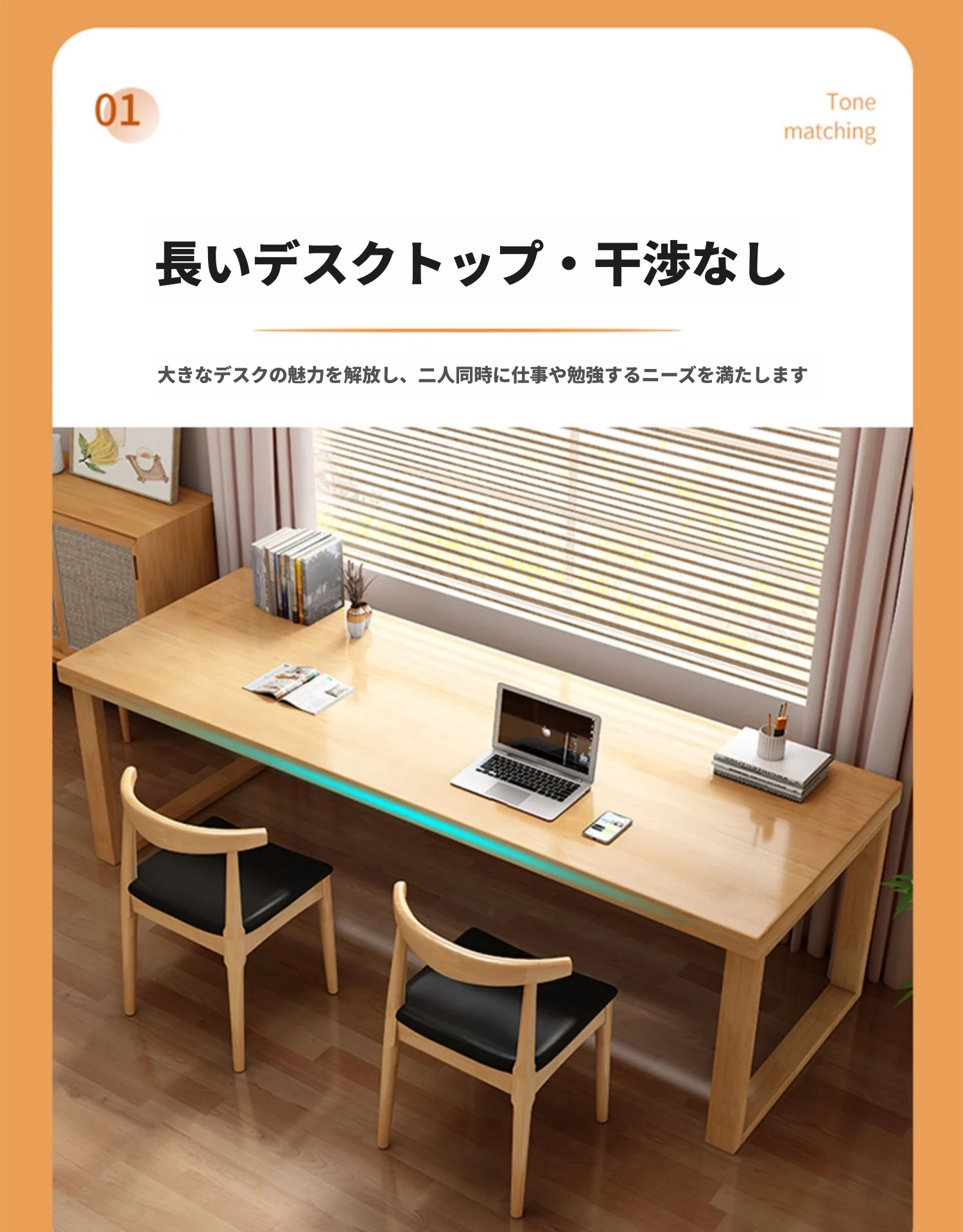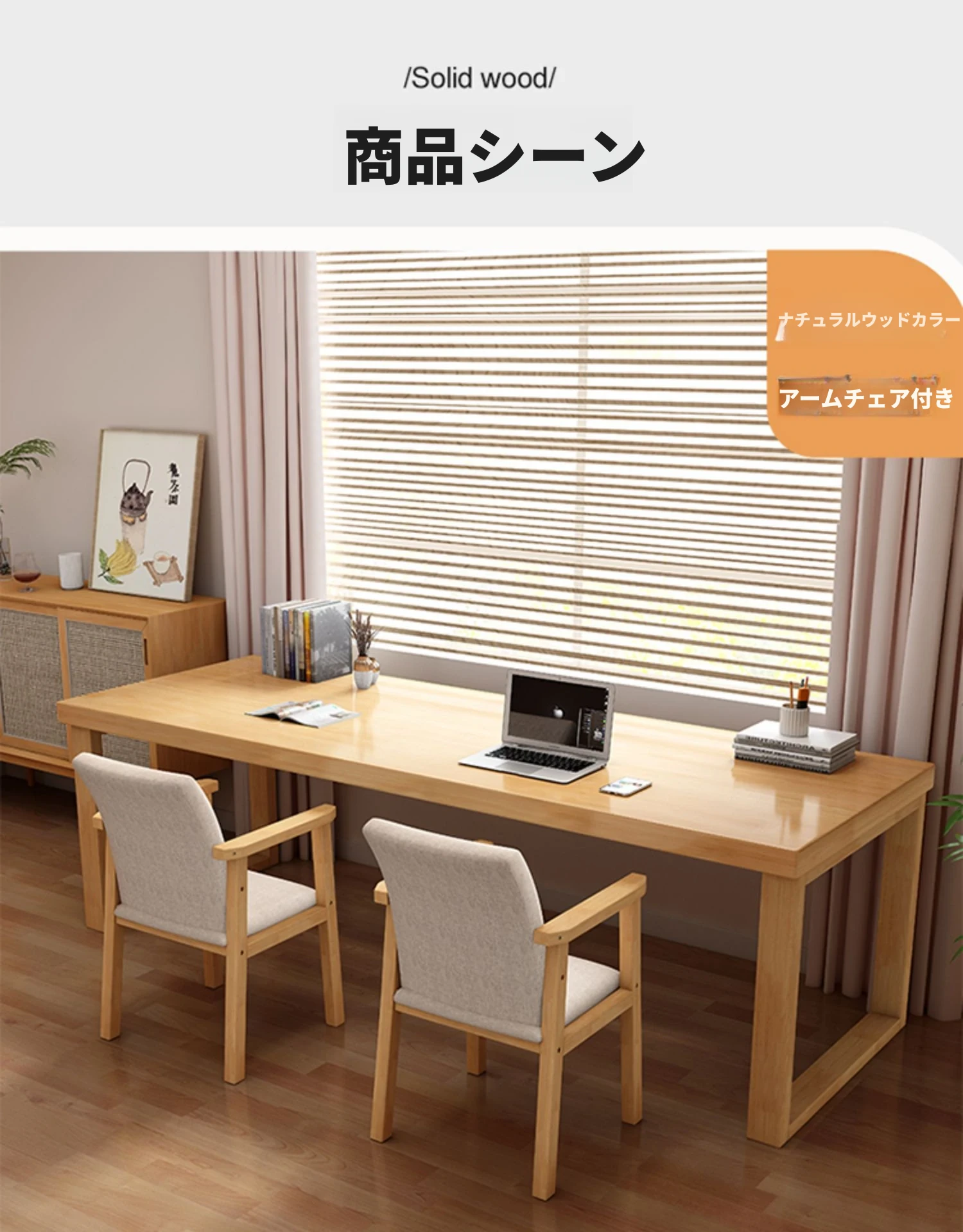 アイスマイ 無垢材 ダイニングデスク 丸ごと木の温もりを感じる2人用 学生・在宅ワーク・書斎用の快適なパソコンデスク おしゃれなロングテーブル どんな部屋にも合うデザイン【贈り物にも最適】