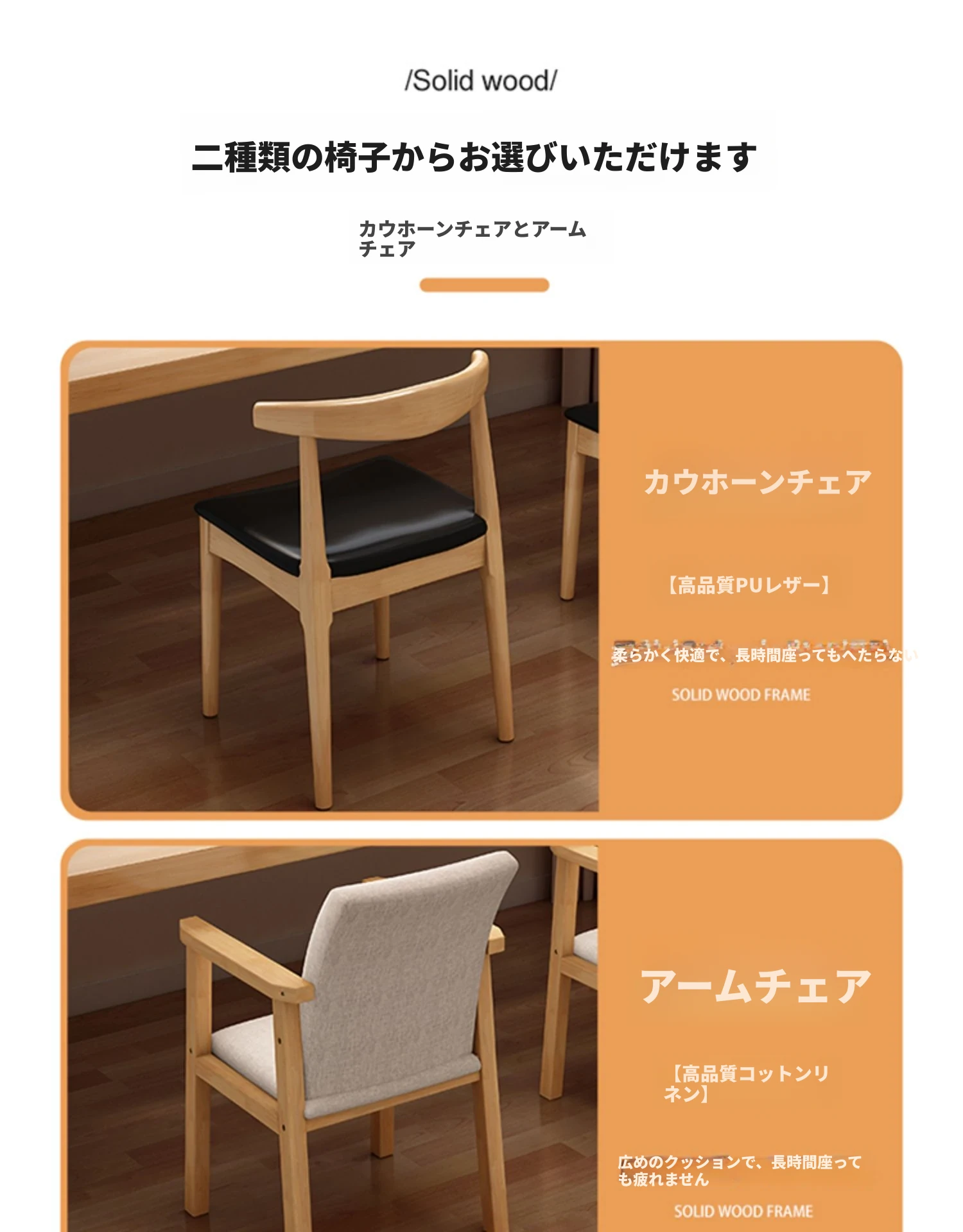 ウォールナット色の単テーブル+カウホーンチェア*2(テーブルトップ4cm厚)