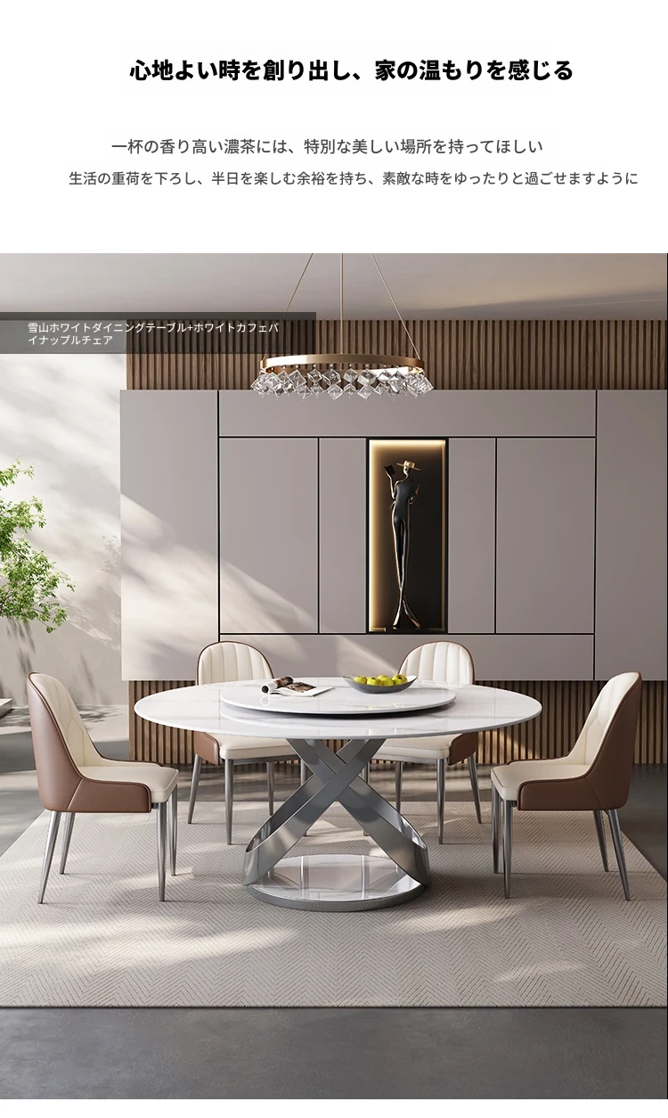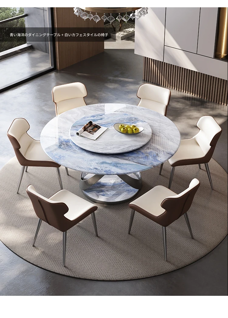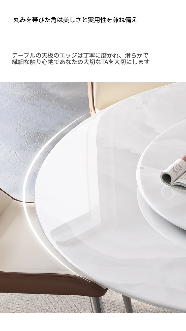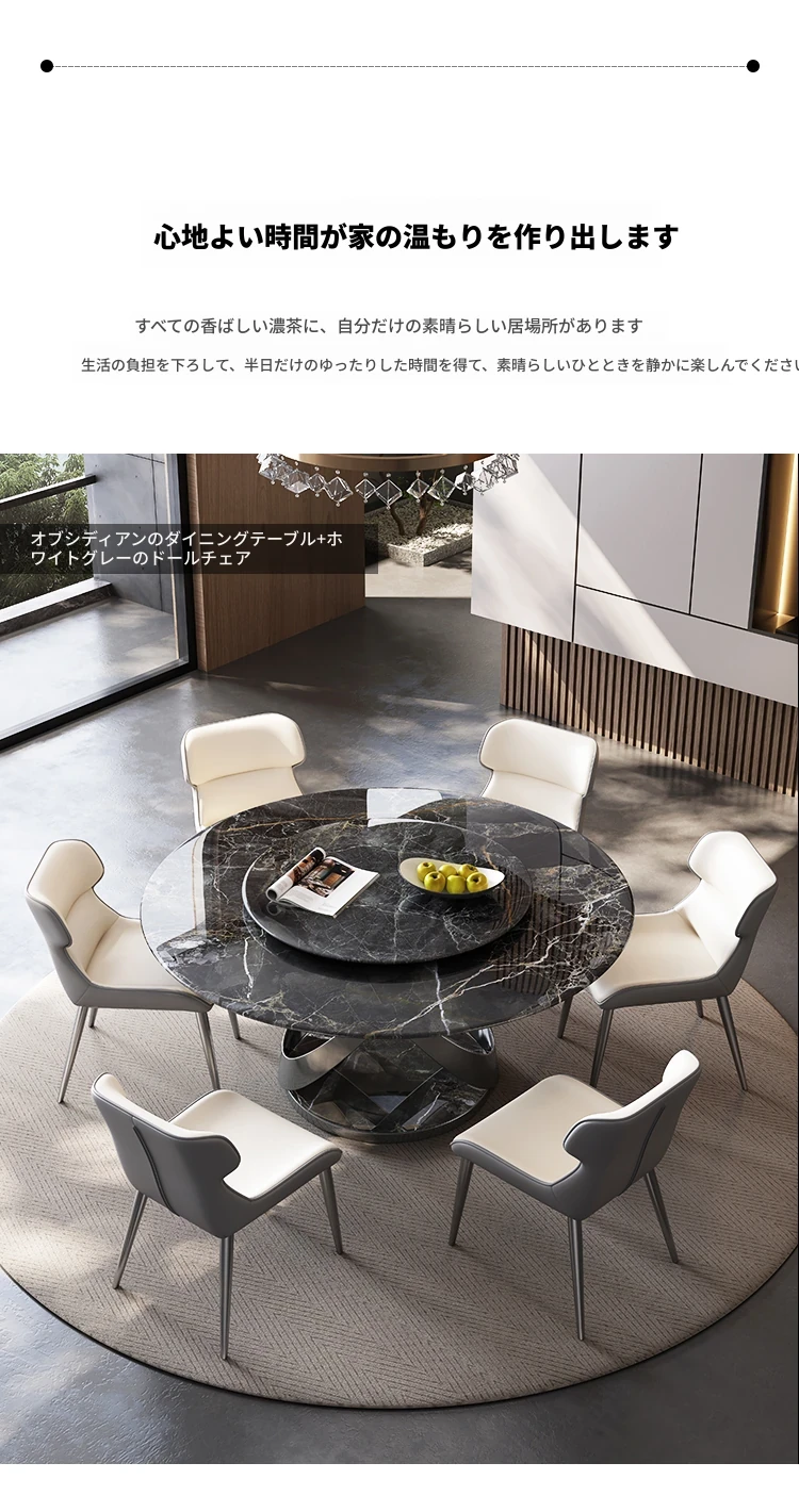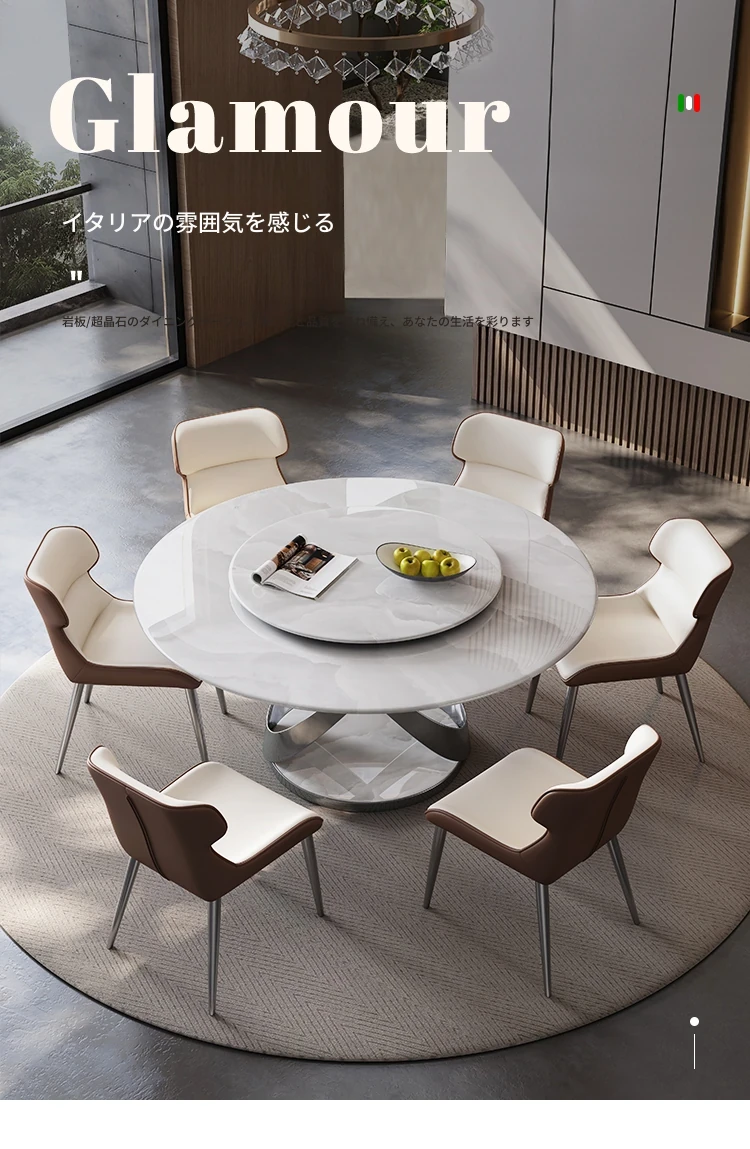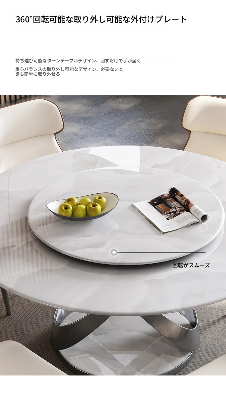 富巧匠イタリアンミニマリスト石板ダイニングテーブル&チェアセット - ラグジュアリーでシンプルな回転式円形テーブル、家庭用食事で心地よさとスタイルを両立!