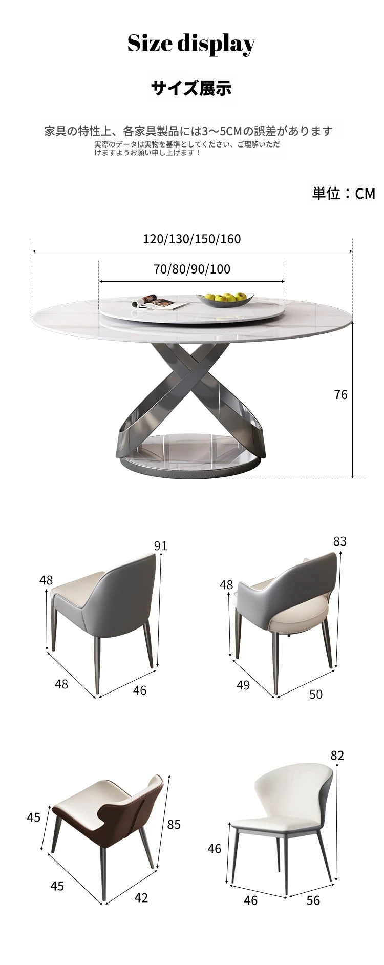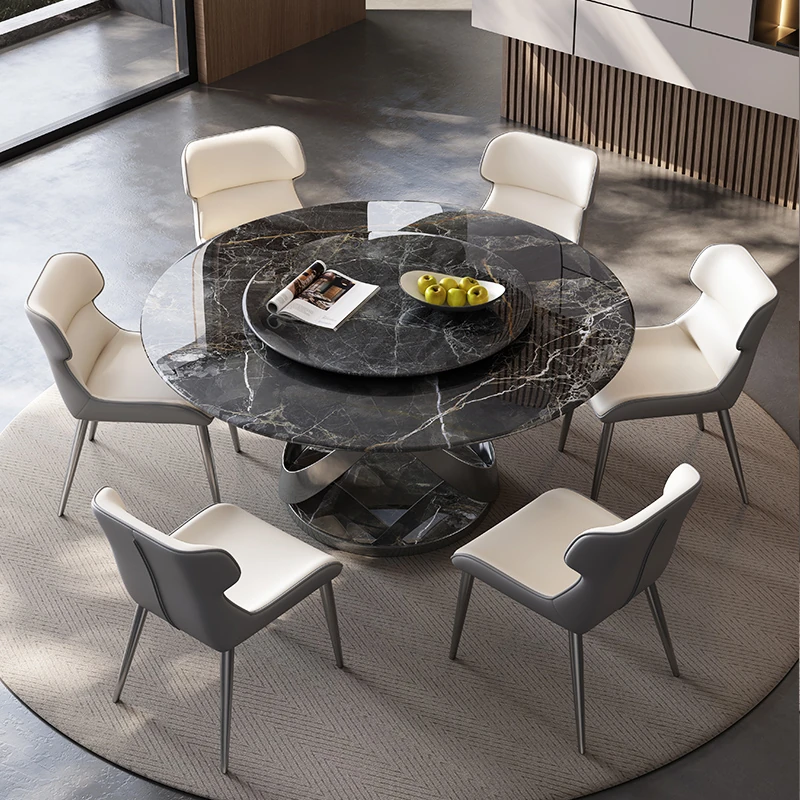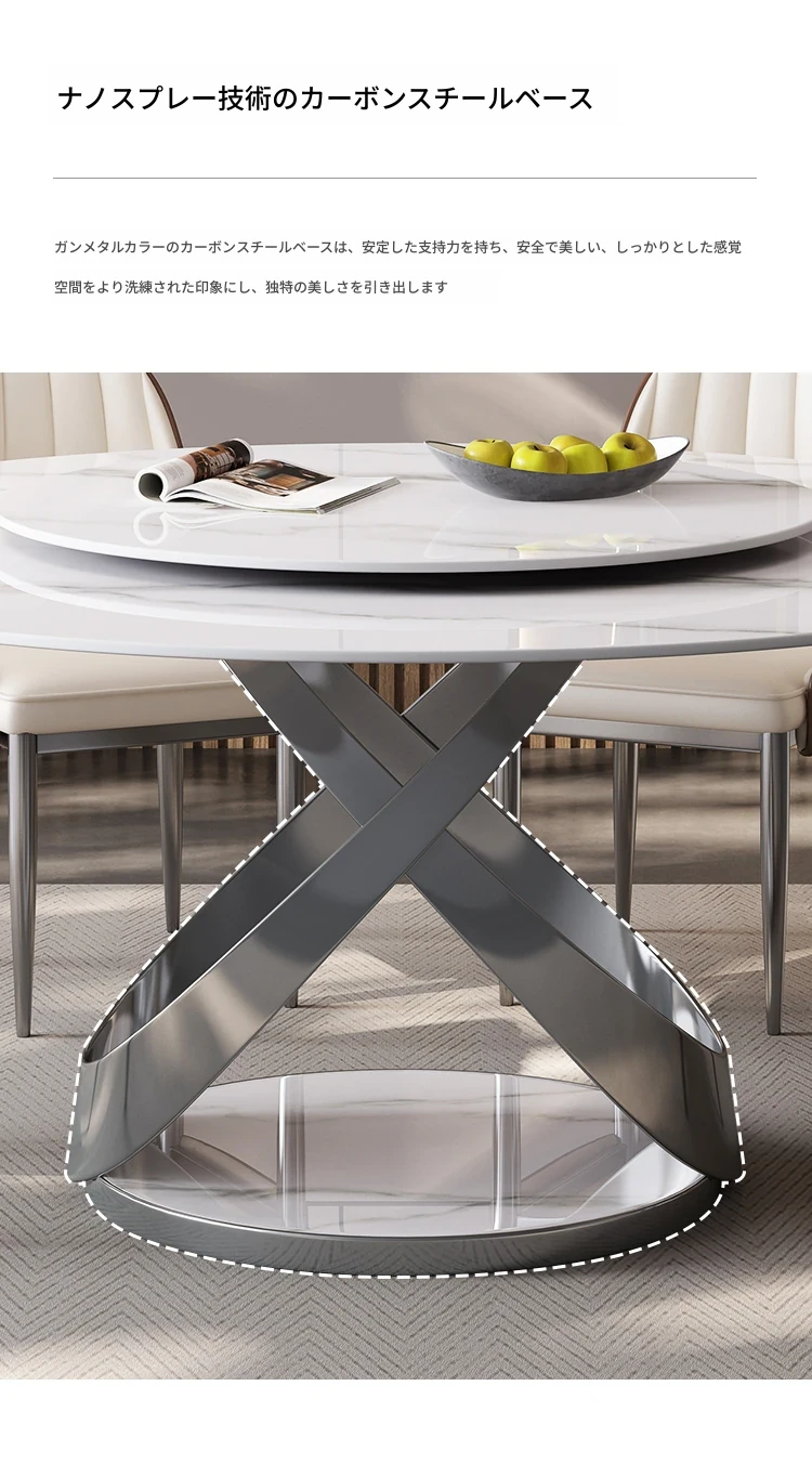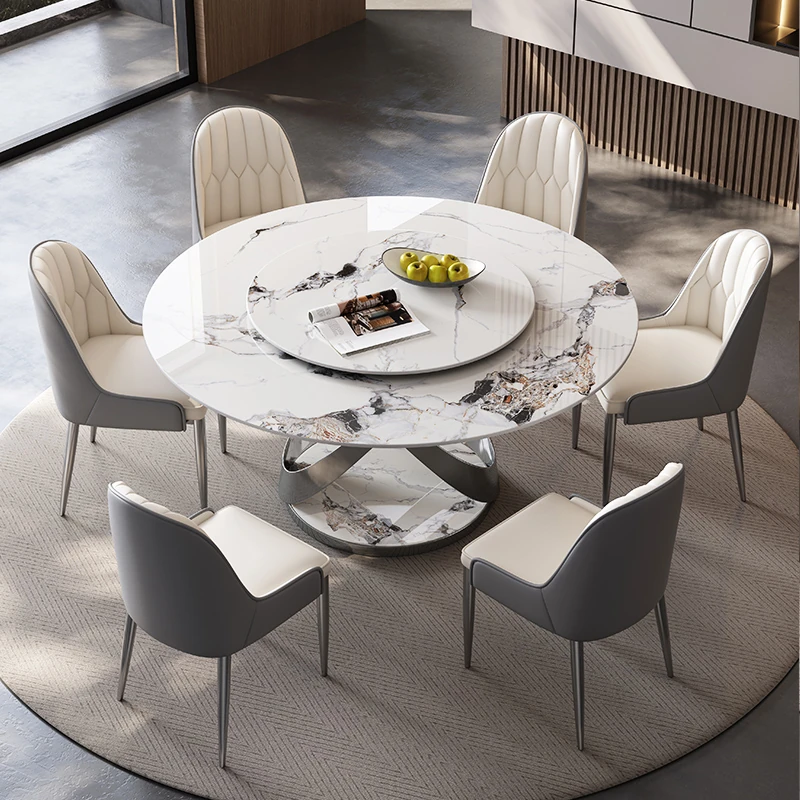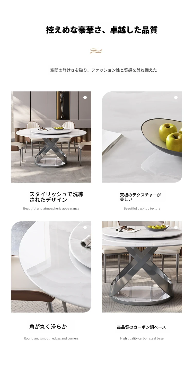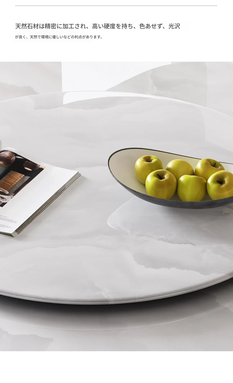 富巧匠イタリアンミニマリスト石板ダイニングテーブル&チェアセット - ラグジュアリーでシンプルな回転式円形テーブル、家庭用食事で心地よさとスタイルを両立!