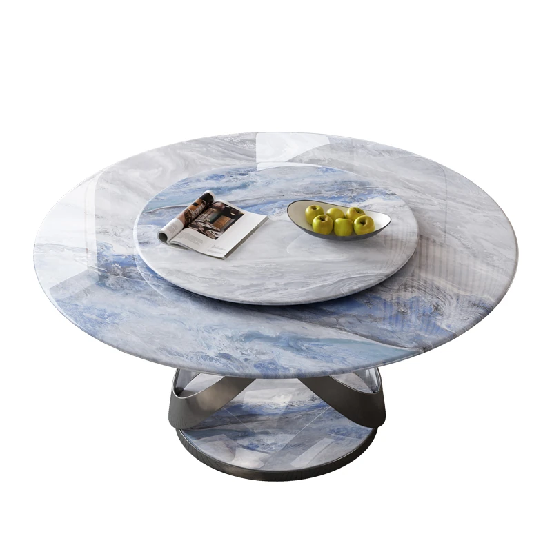 【岩板】808#円卓+回転盤+4脚猫爪皮宇宙椅子