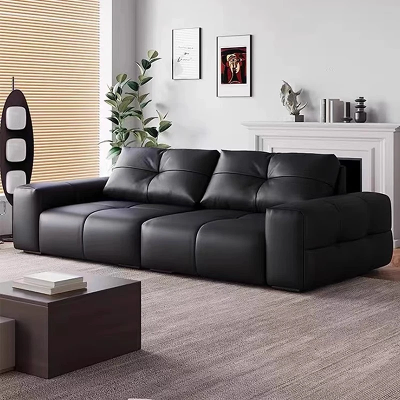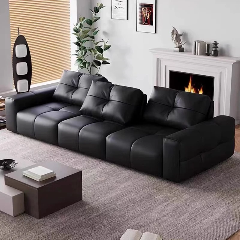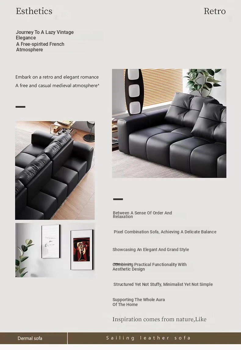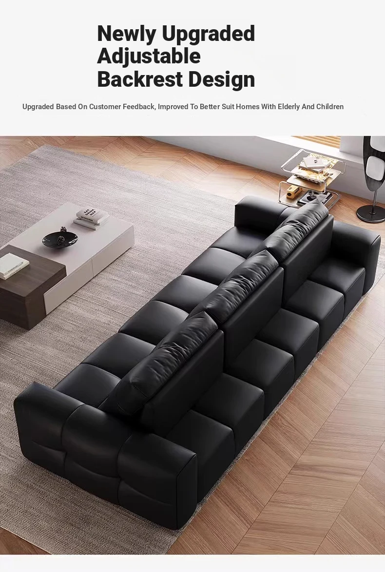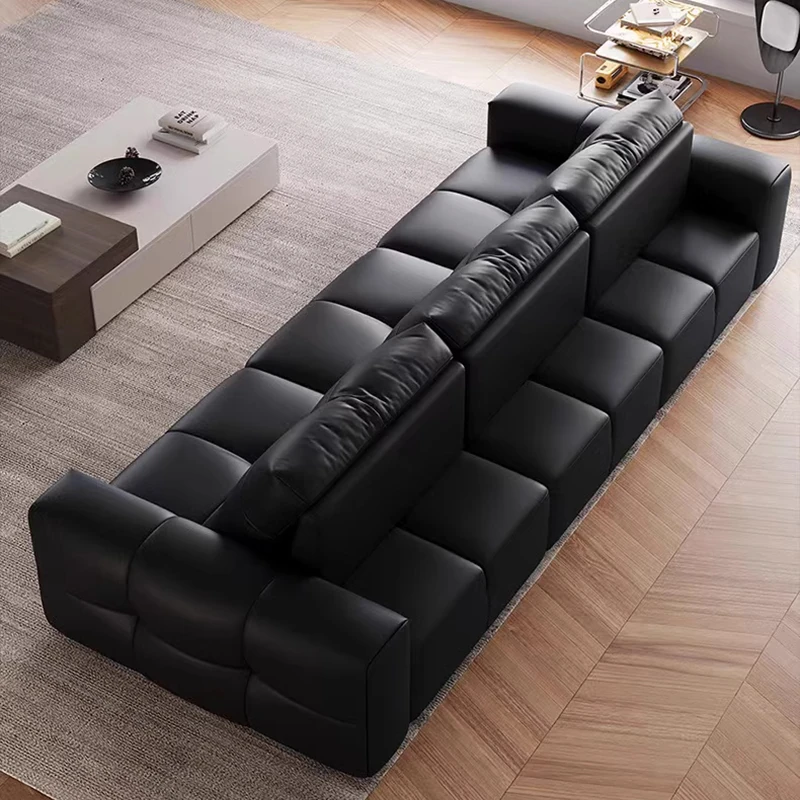 カイミャオピクセル本革ソファ - 広州佛山のシリコンレザー使用、レトロモダンデザイン、移動可能な背もたれ付きのスタイリッシュなブラックソファ。快適で魅力的な空間を演出します!