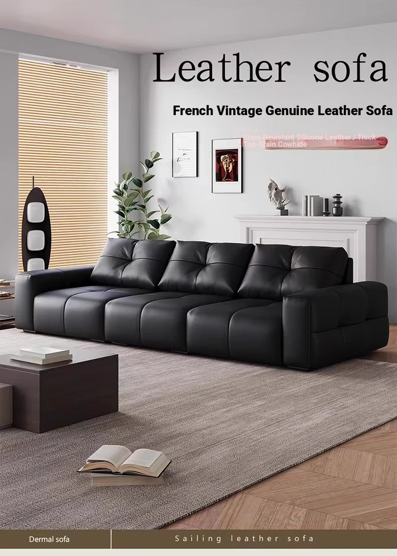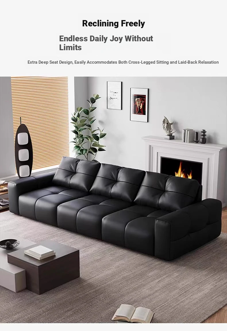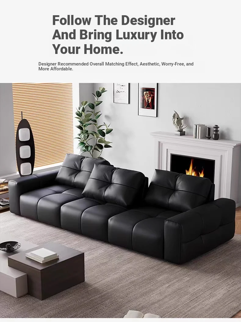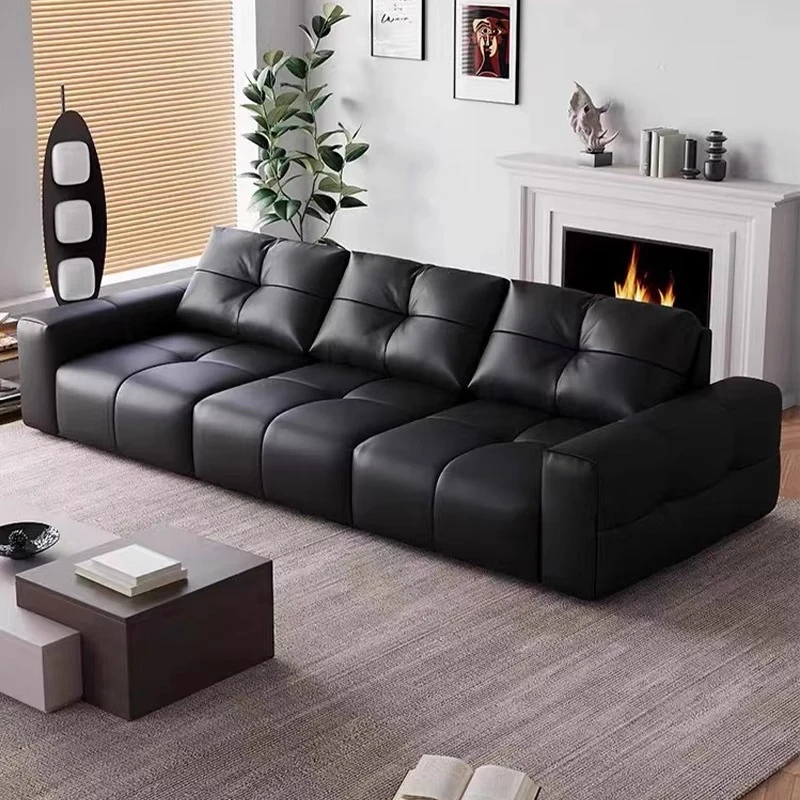 カイミャオピクセル本革ソファ - 広州佛山のシリコンレザー使用、レトロモダンデザイン、移動可能な背もたれ付きのスタイリッシュなブラックソファ。快適で魅力的な空間を演出します!