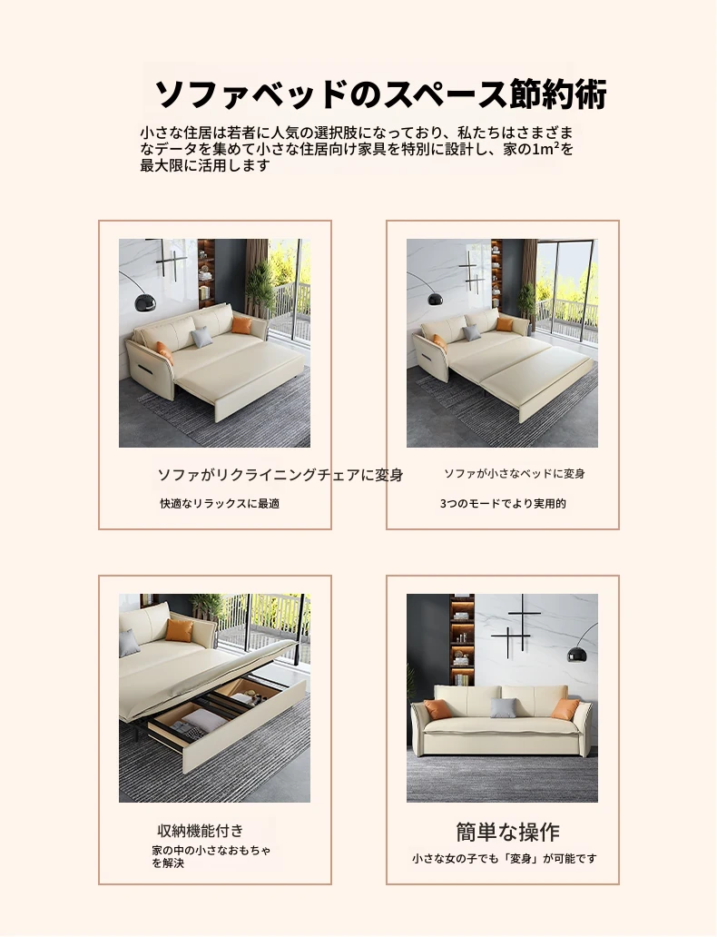 ケリア 可折りたたみソファベッド|多機能デザインで狭いお部屋にもぴったり!最新テクノロジー素材使用のスタイリッシュなインスタ映えソファベッド