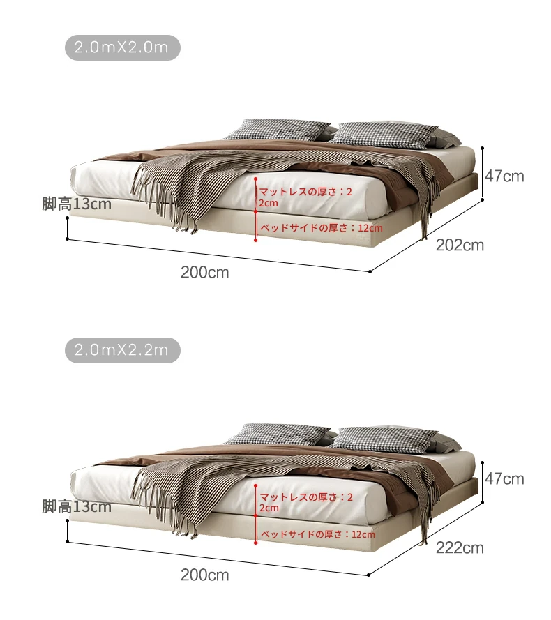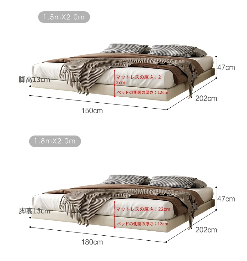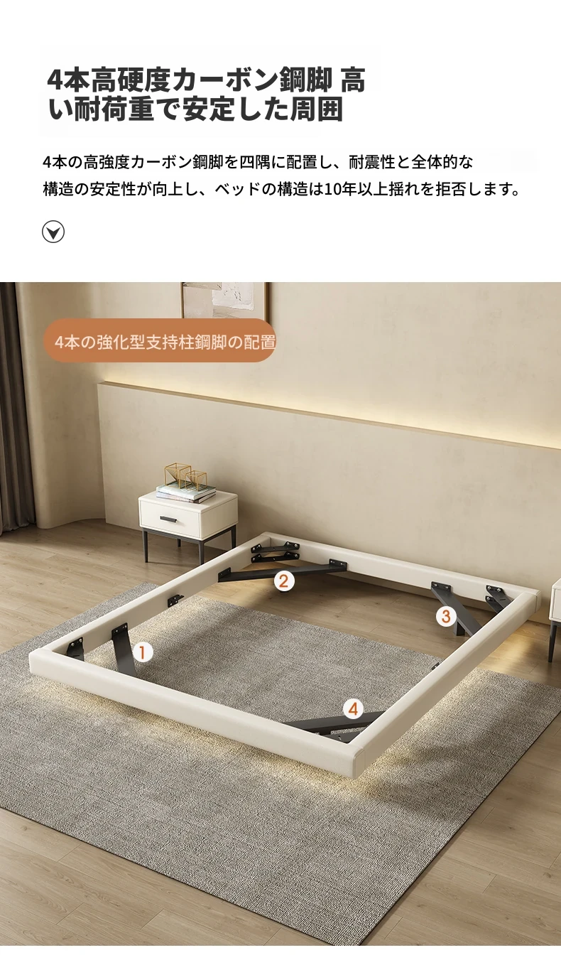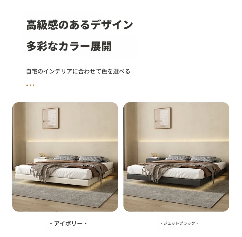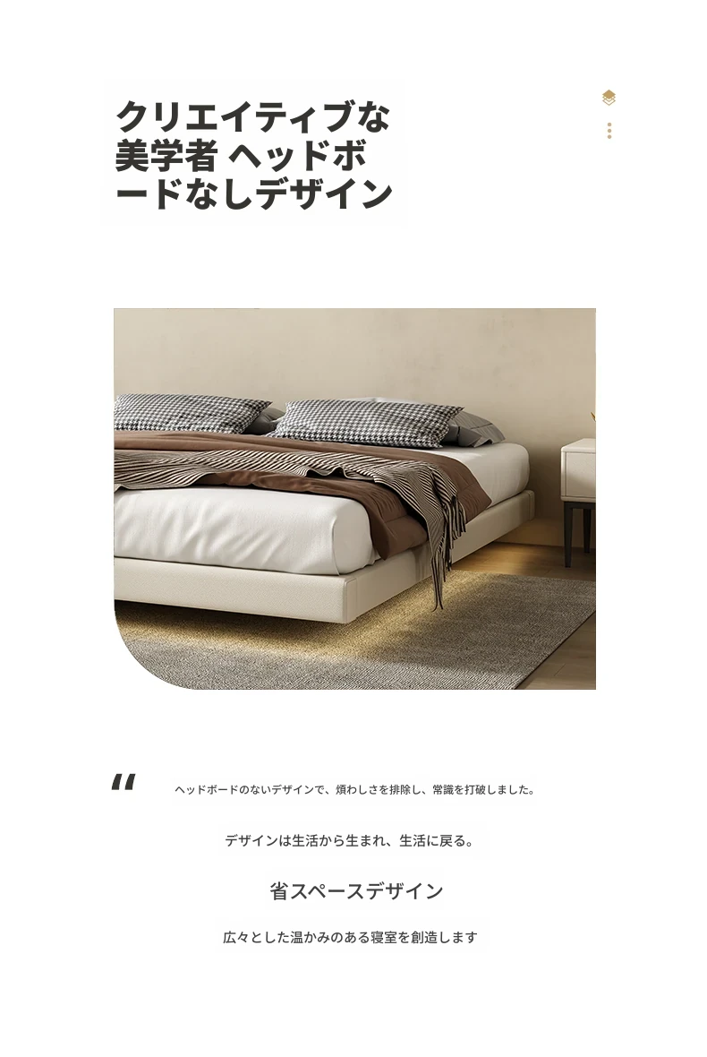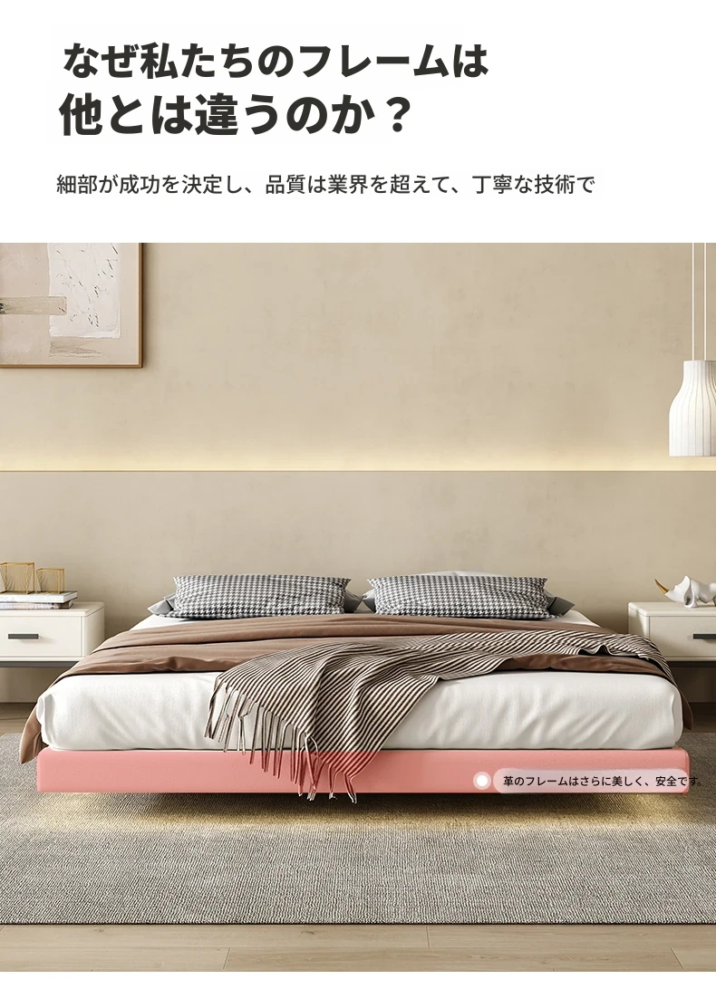 南奢北華のヘッドボードなし浮遊ベッド - モダンでシンプルなデザインの主寝室用軽奢大床。収納機能付き、本革ベッドと浮遊感のある無垢材ベッドで、心地よい空間を演出!