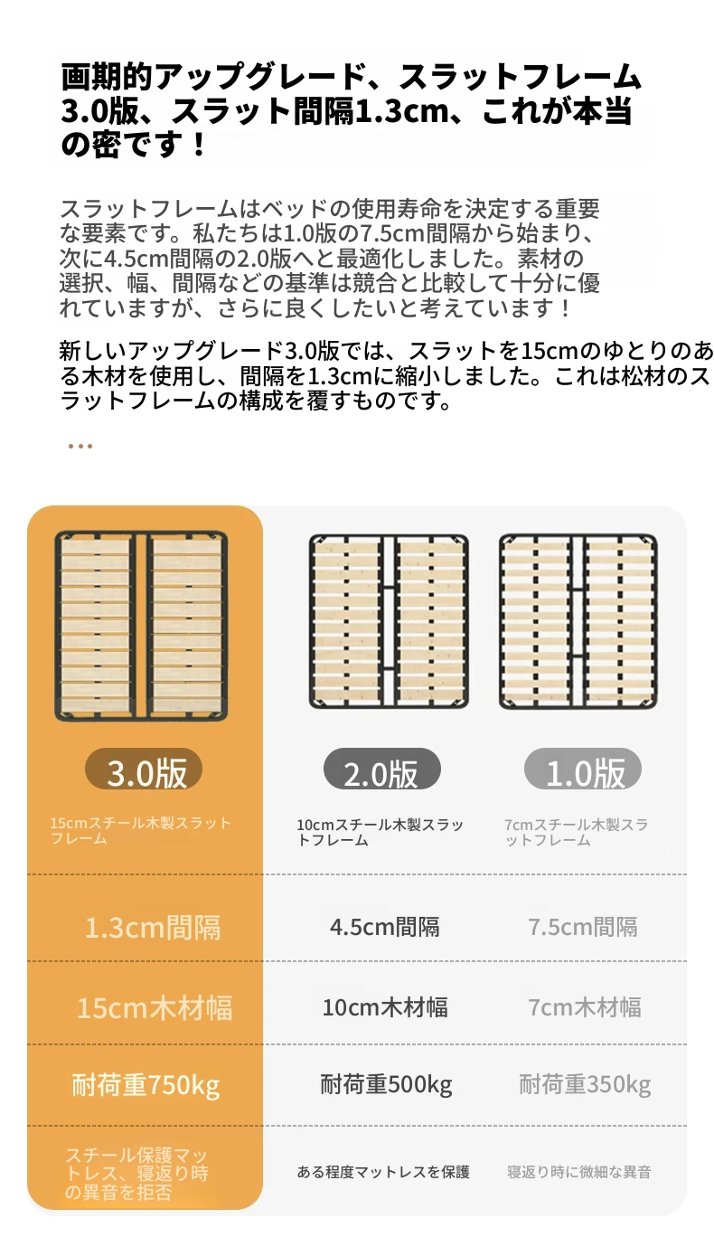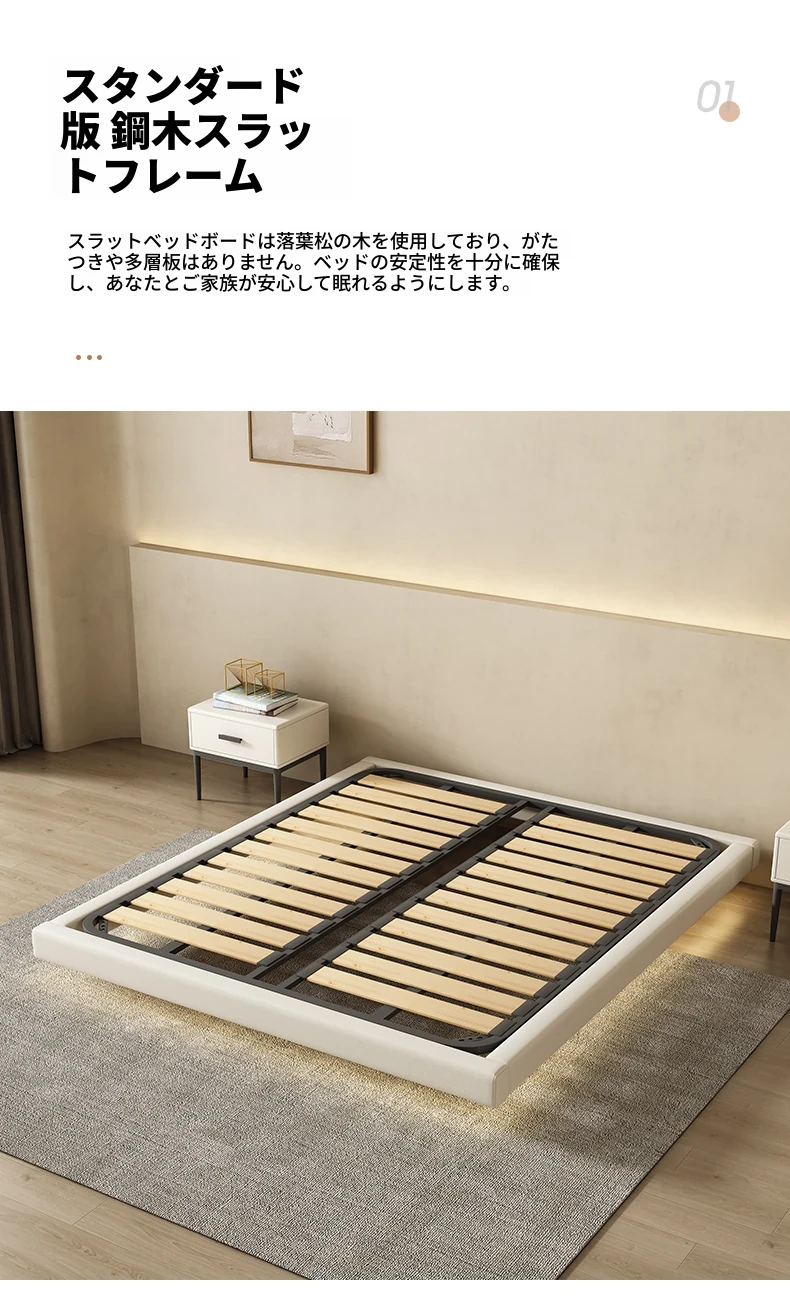 【スチールウッドスラットフレーム】ライトなしシングルベッド+9ゾーン静音5D通気性ラテックスマットレス