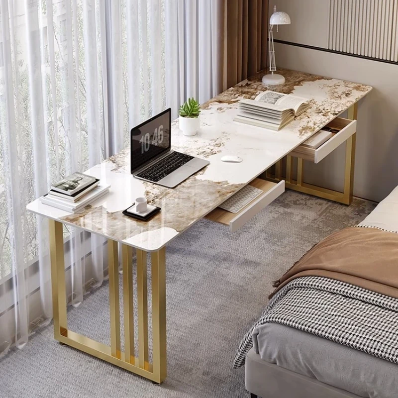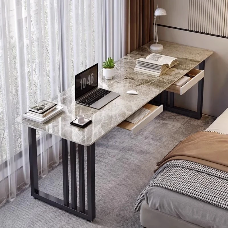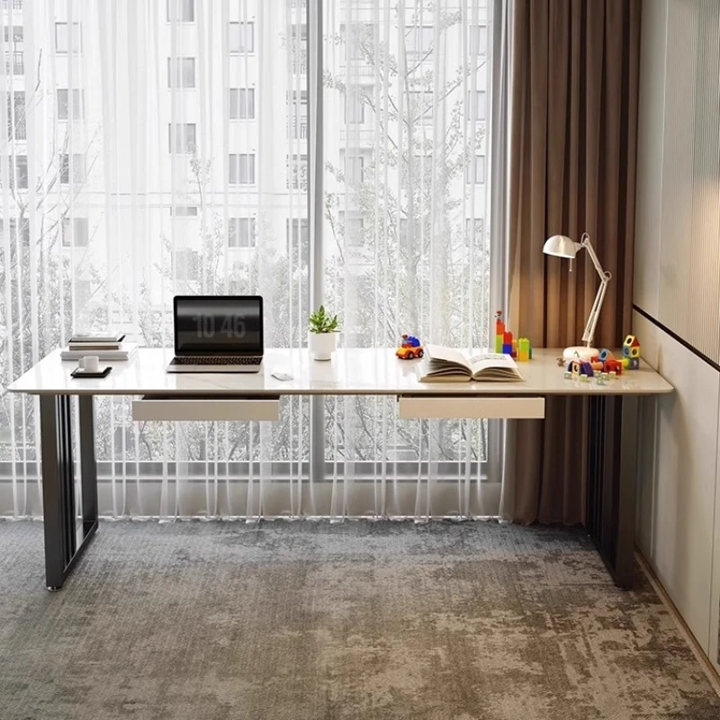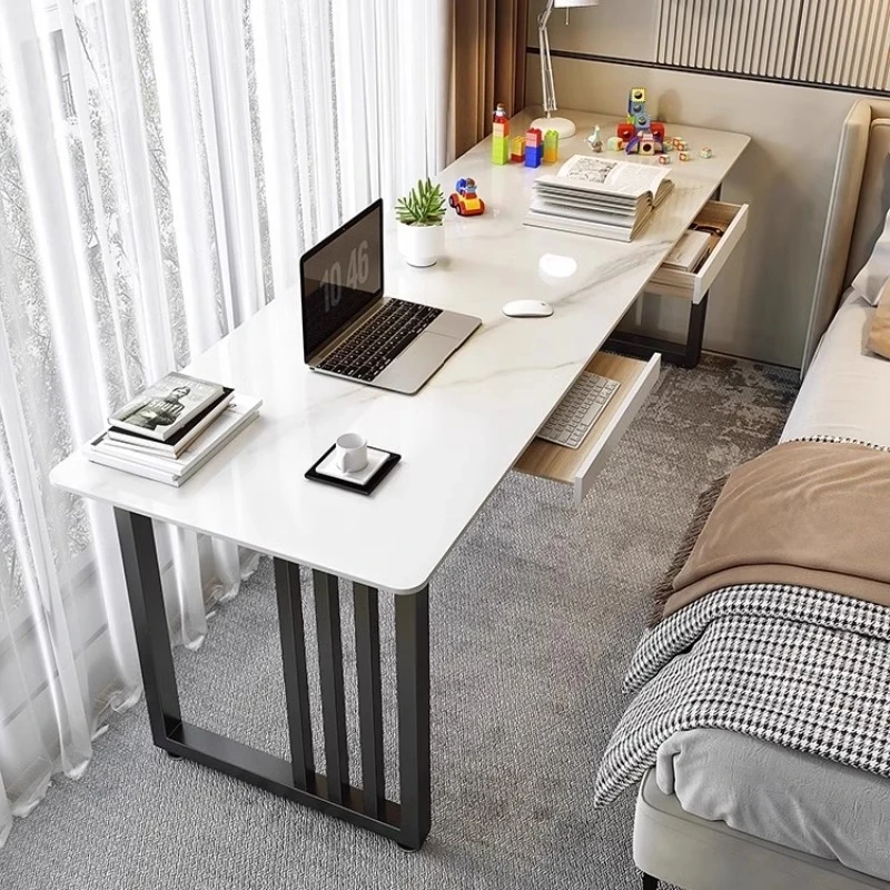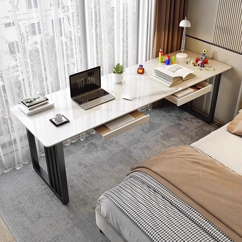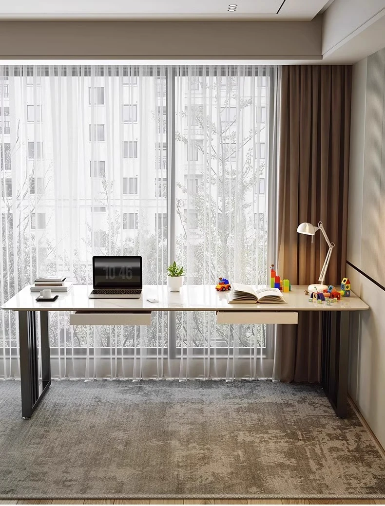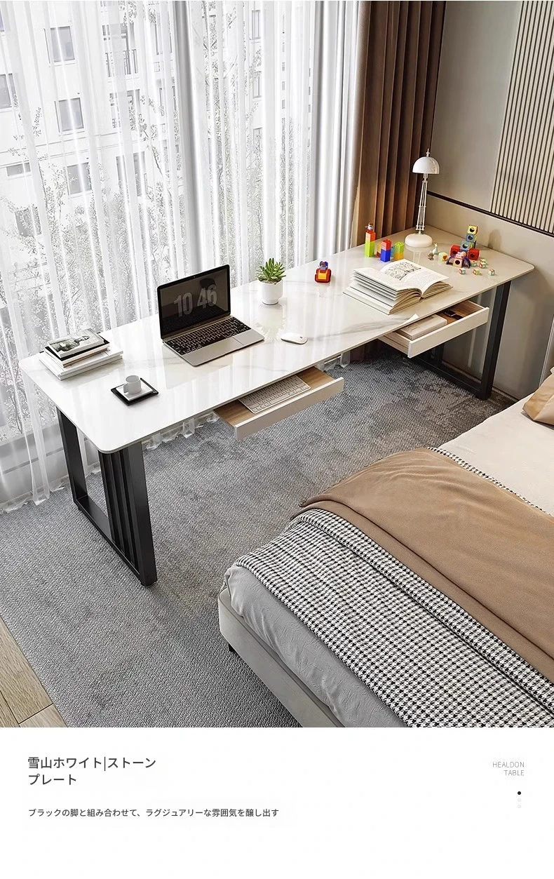 ベージュオレンジのシンプルな壁付け長テーブル|二人用デザイン|スタイリッシュなデスク|狭いスペースにもぴったりのバルコニーやベッドサイドに最適なパソコンデスク