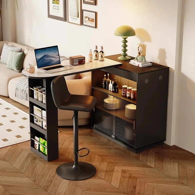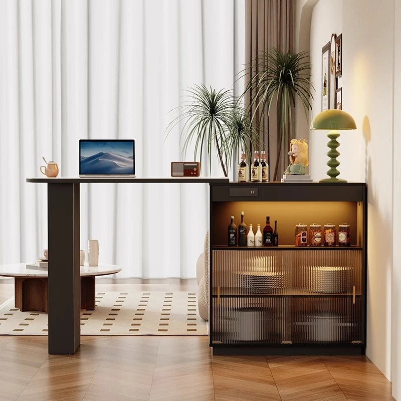 セントバリューブラックバーカウンターテーブル|モダンで洗練されたデザインのリビング用ダイニングキャビネット|ソファー間仕切りに最適|コンパクトでも広々とした空間演出が可能!