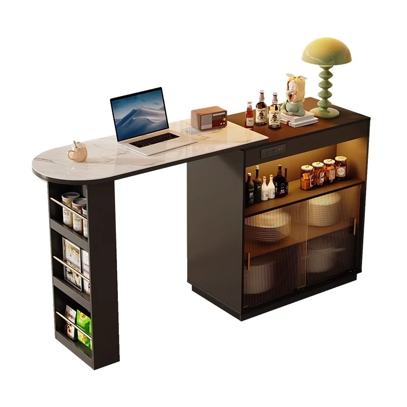【クリームホワイト塗装 組込み式電源タップ】100cm長のバーカウンター + ストーントップスライドキャビネット 【クリームホワイト塗装 組込み式電源タップ】100cm長のバーカウンター + ストーントップスライドキャビネット