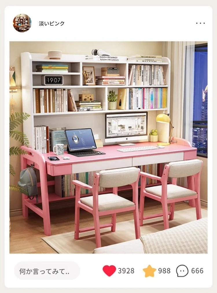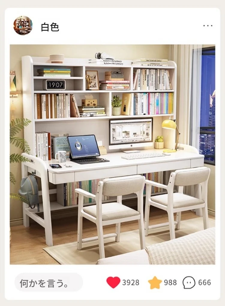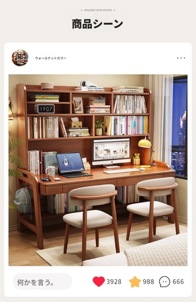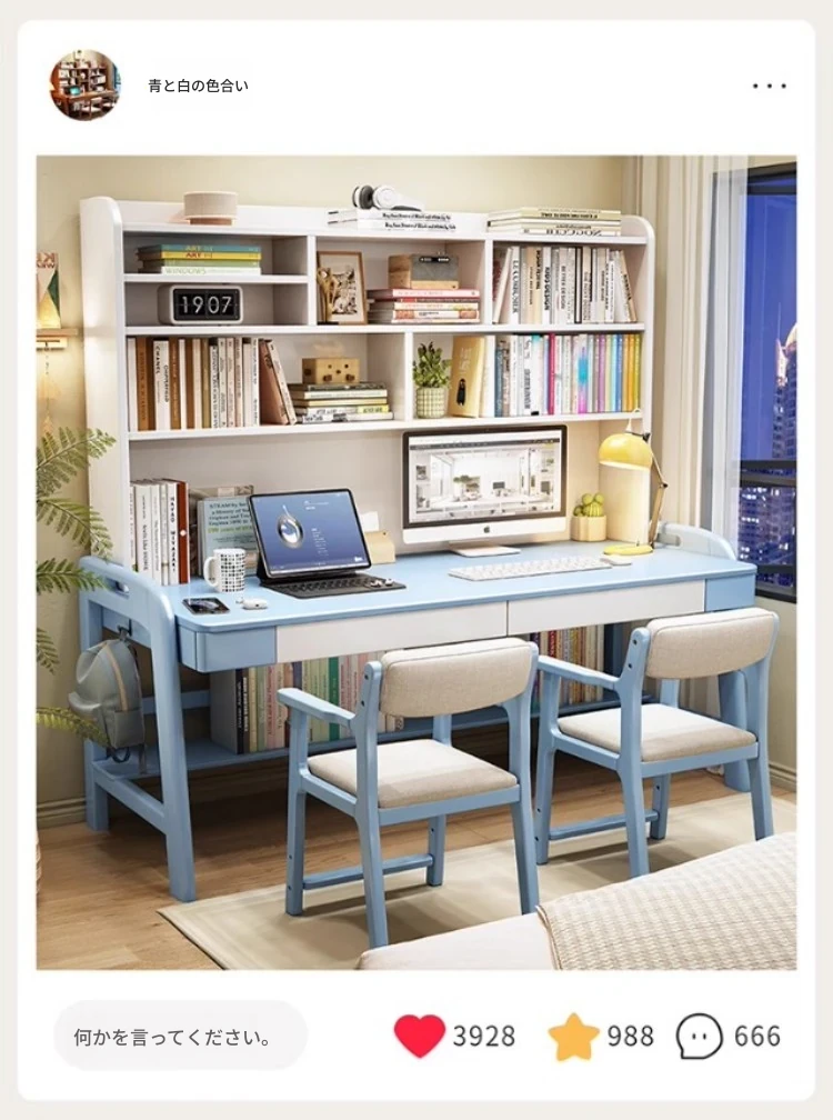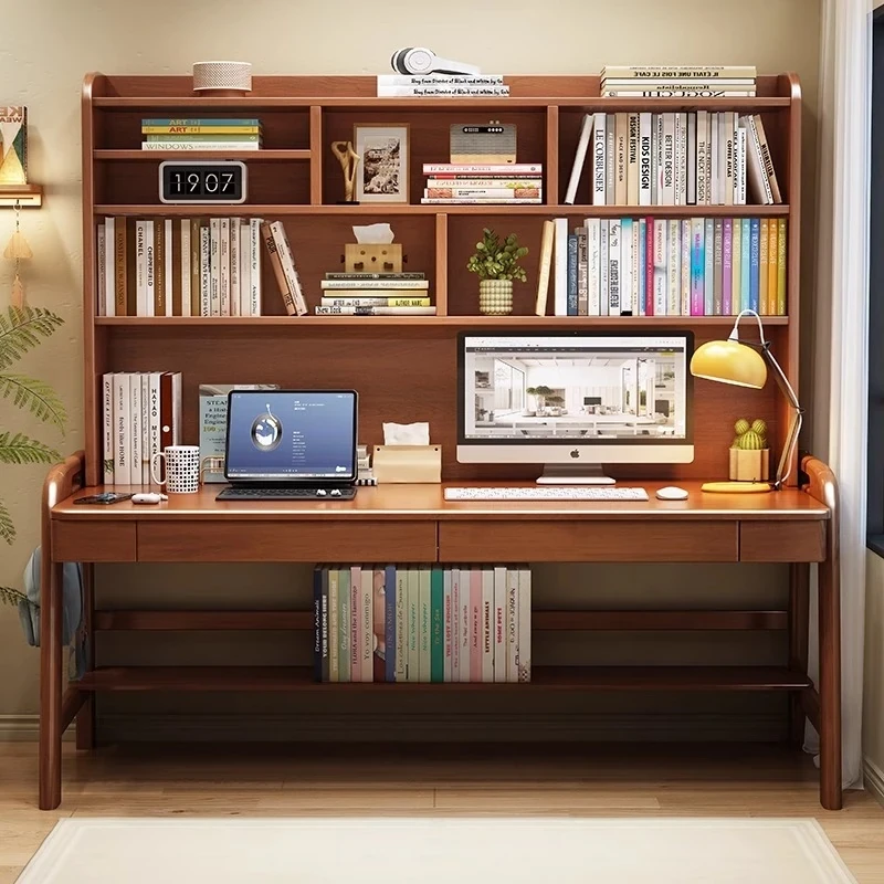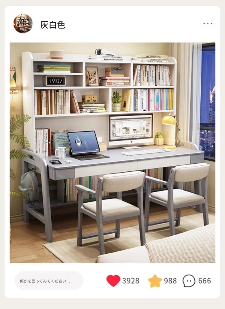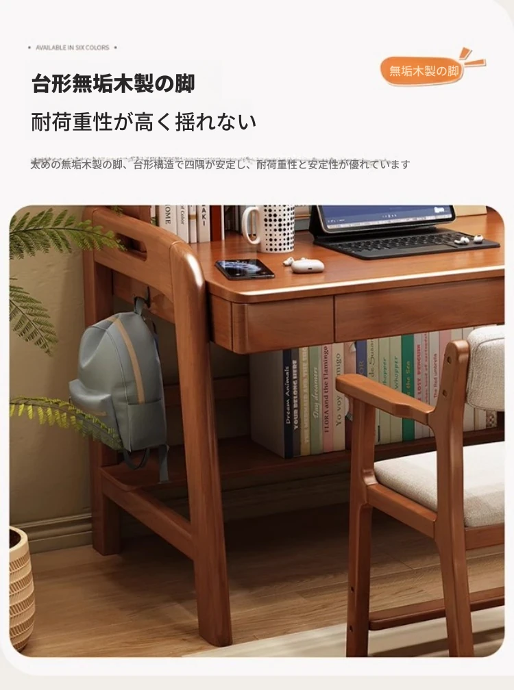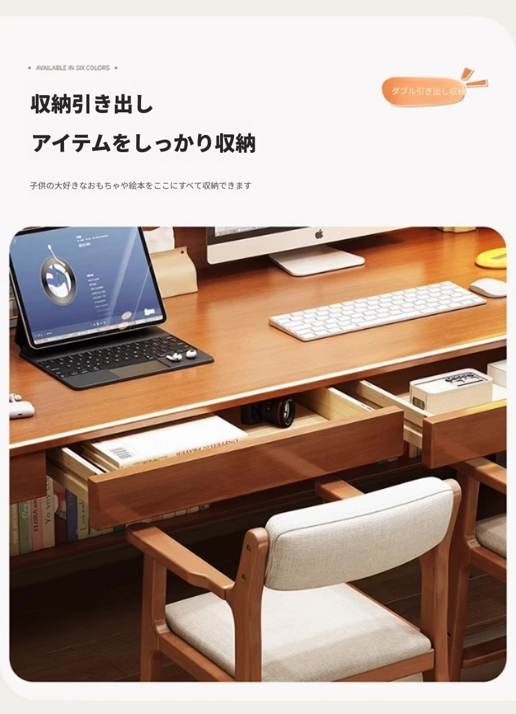 豪華な無垢材ダブルデスク&書棚一体型家用学生向けシンプルモダン昇降学習デスク【机と本棚が一体の機能的デザイン】勉強が楽しくなる理想の空間を実現!