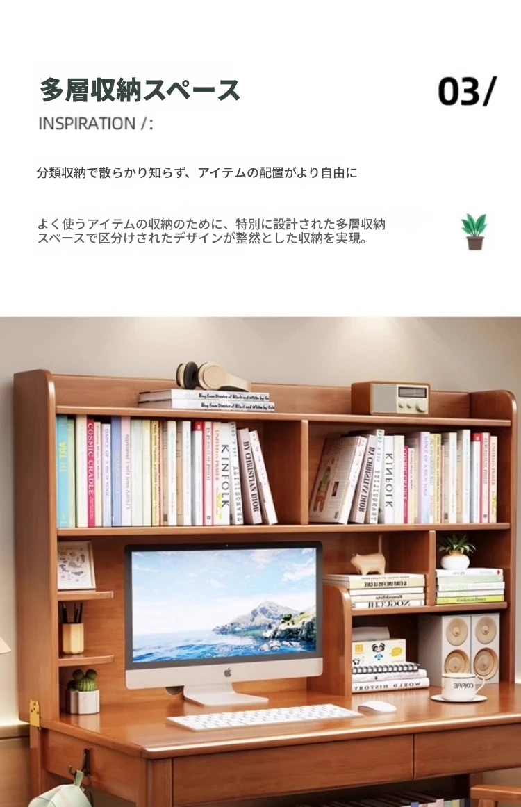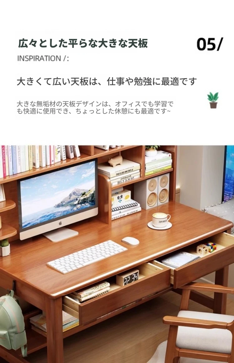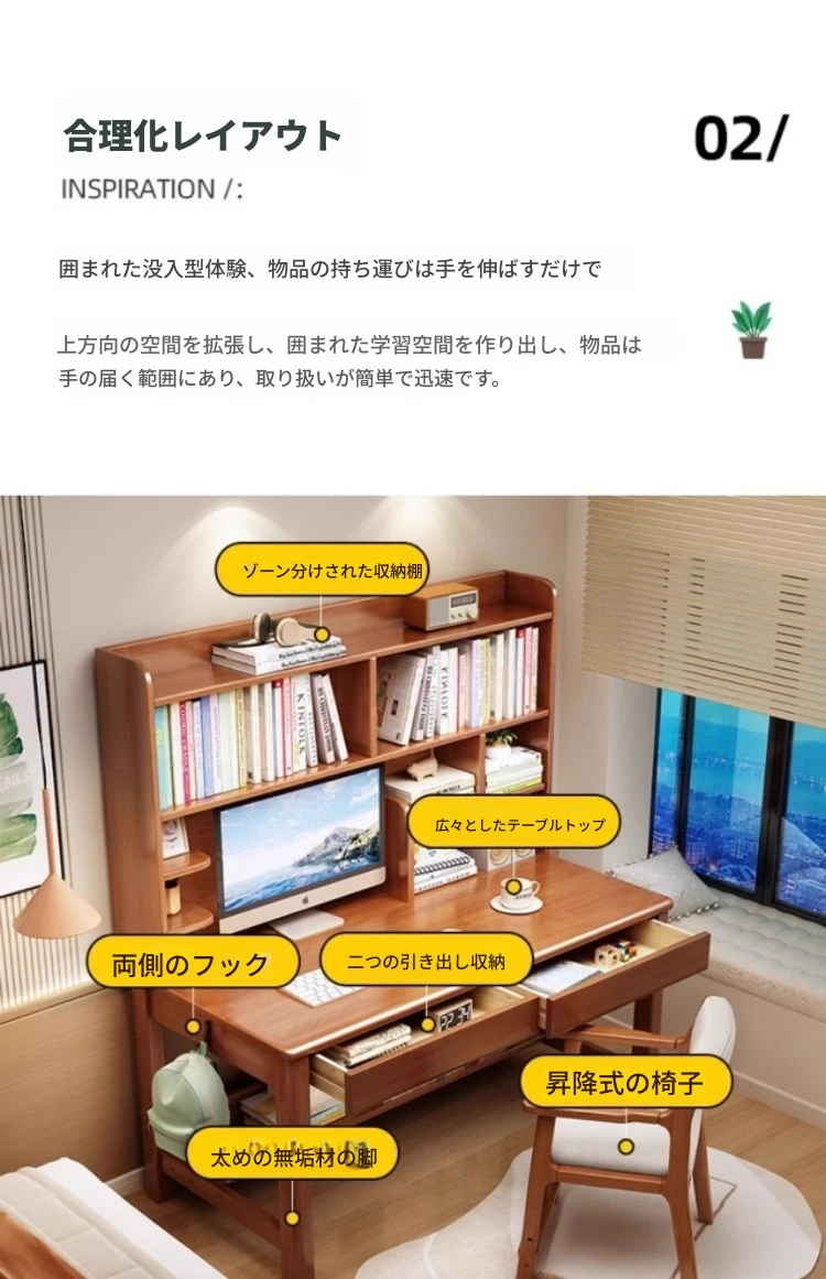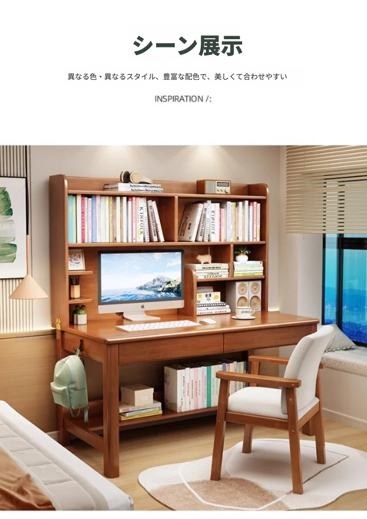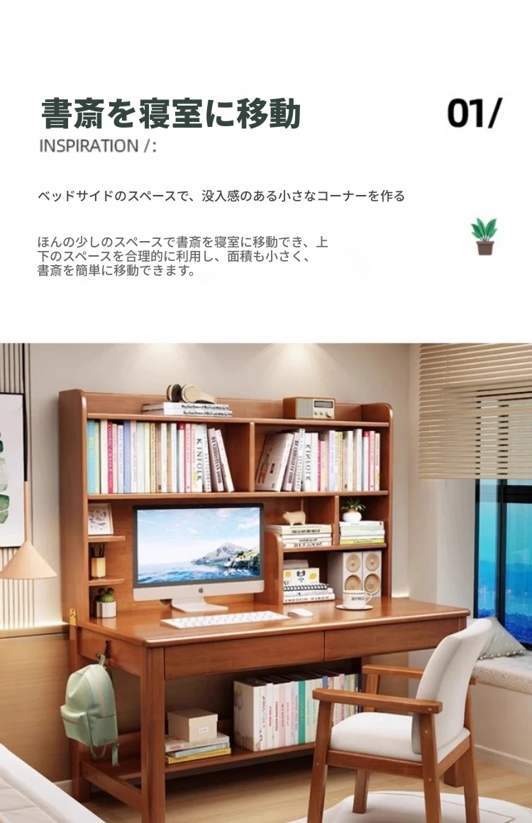 豪華な北欧スタイルの実木デスク&シェルフ一体型!学生・家庭向けの多機能ボード学習テーブルと本棚のコンビネーションで、快適な学習空間を実現。整理整頓も簡単で、勉強がもっと楽しくなる!